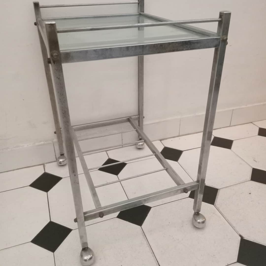 Mesa carro 2 planos con tapa vítrea y estructura cromada. 56 x 42 x 69 cm alt.