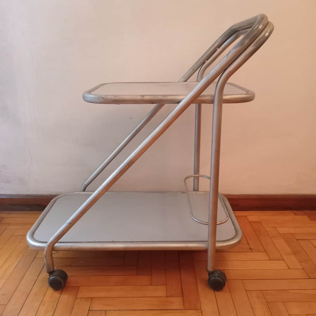 Mesa carro con estructura cromada 2 planos. Con desgaste de uso. 64 x 37 x 74 cm.