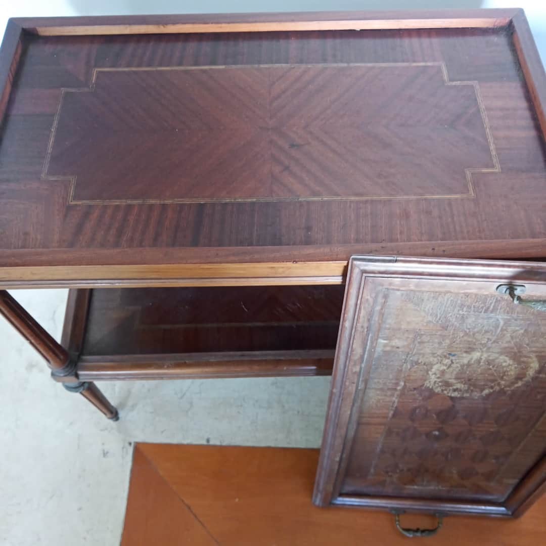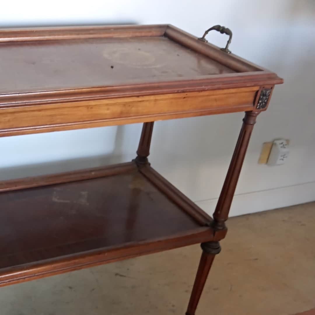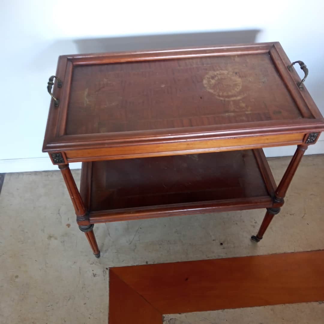 Mesa carro mayordomo en madera, con detalles (ver fotos). 70 x 40 cm. Alt 70 cm.
