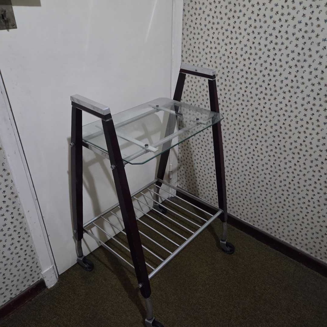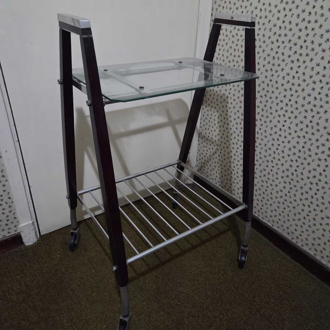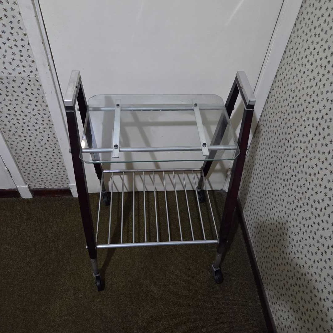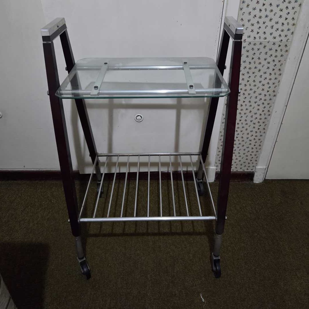 Mesa de TV vintage 2 planos, estructura cromada y ruedas. 0 x 38 x 80 cm.