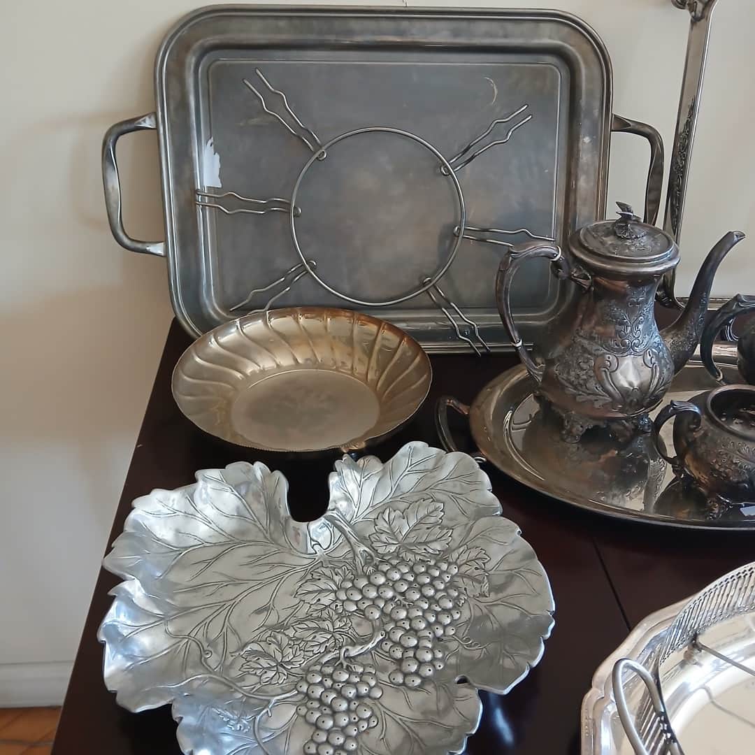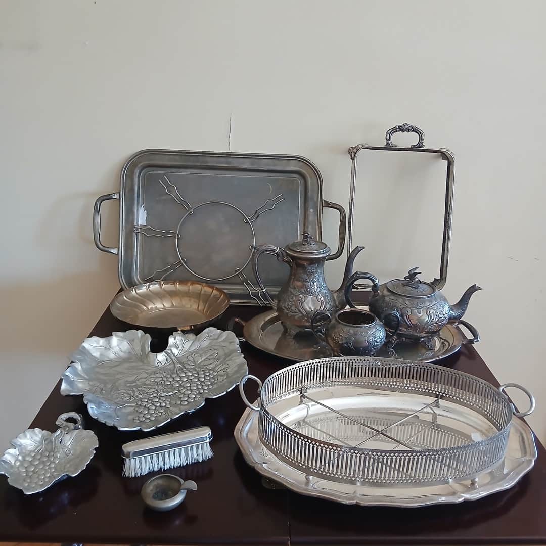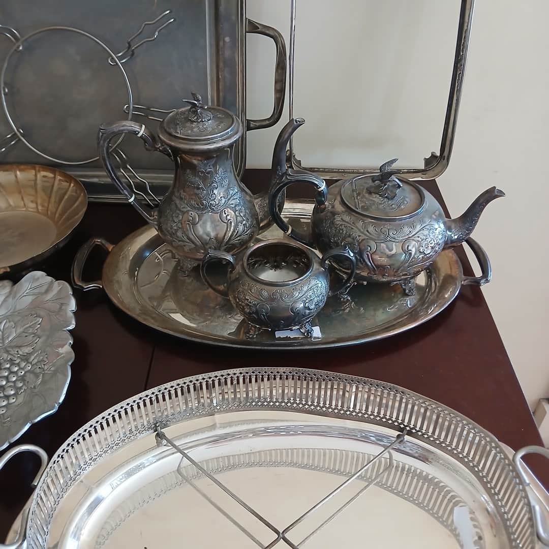 Bandejas, servicio (incompleto), cenicero y más. Tetera más alta 23 cm.