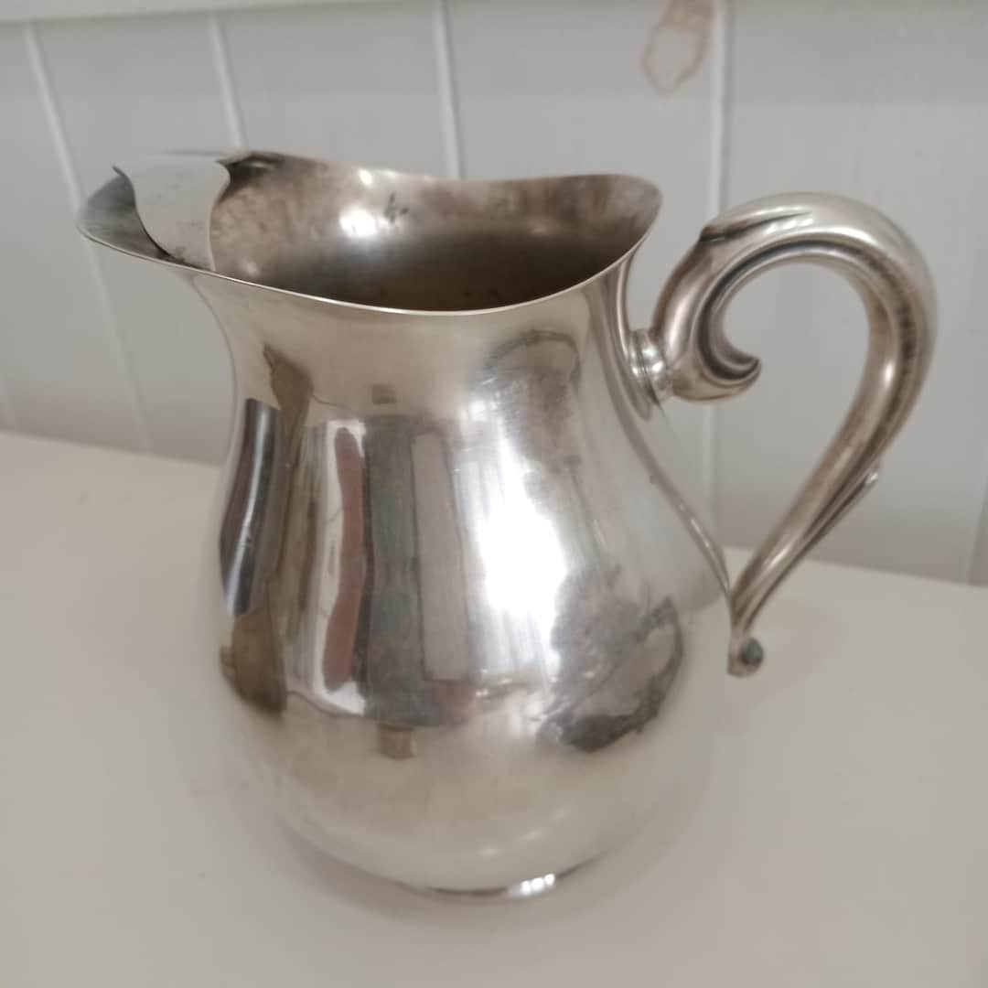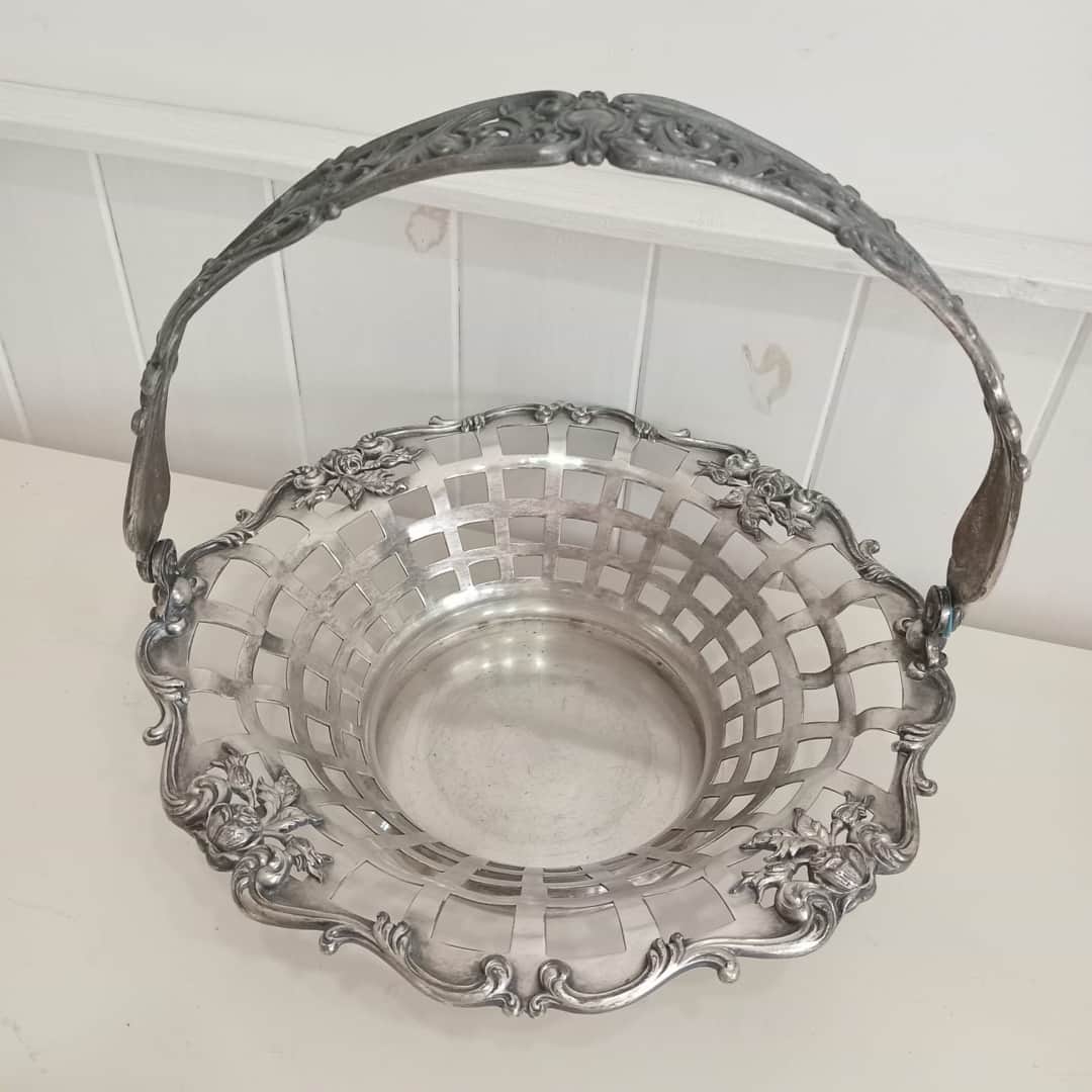 Canasta en metal plateado, jarra en metal plateado, campana en bronce con soporte ( Alt campana 9,5 cm , Largo soporte 12,5 cm). Retiro el 5/12 de 11 a 13 hs por Beccar.