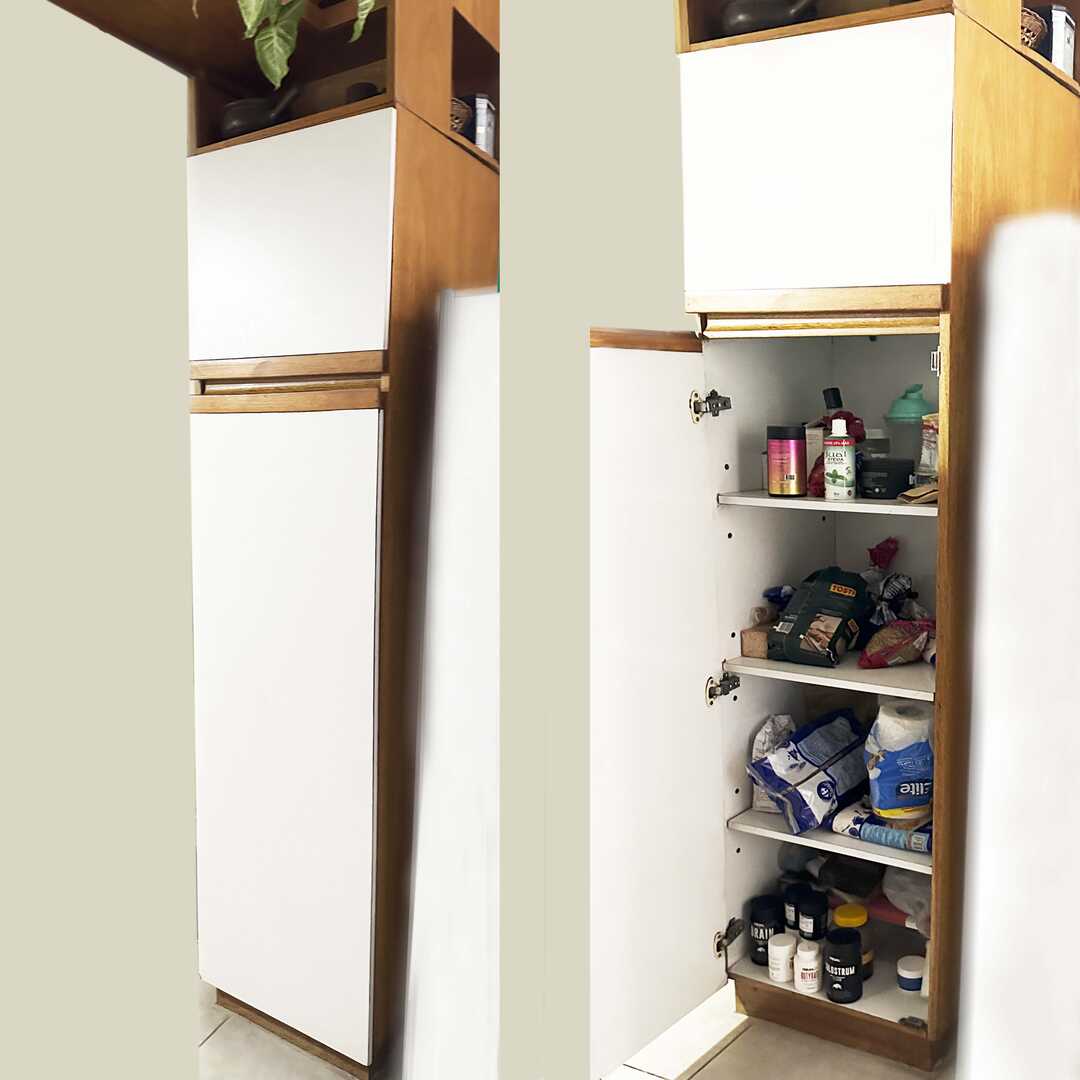 Mobiliario de cocina. Alacena flotante con 2 puertas + Mueble tipo escobero con estantes + 2 bauleras de guardado superiores. A desarmar y/o desinstalar por el comprador.