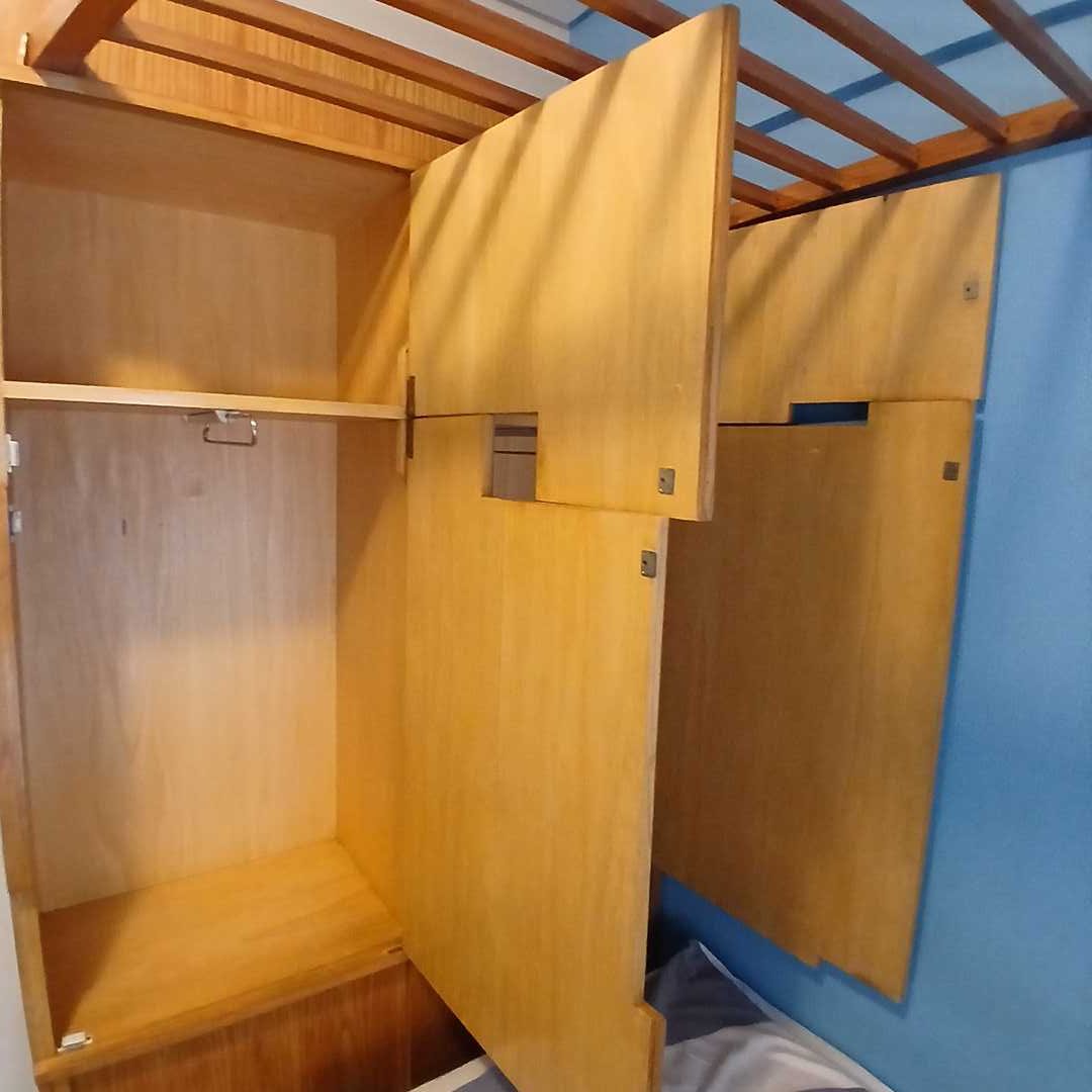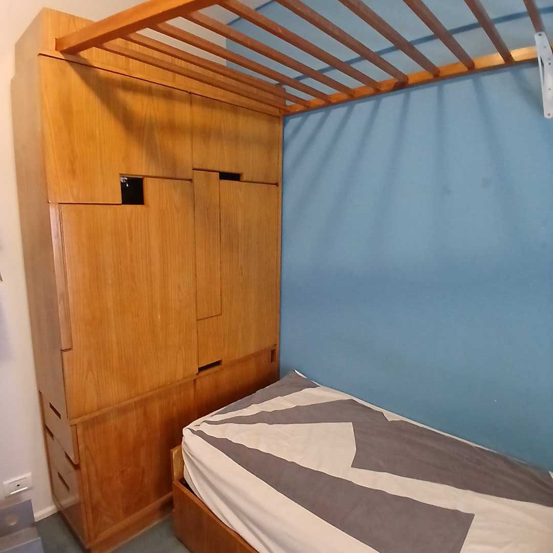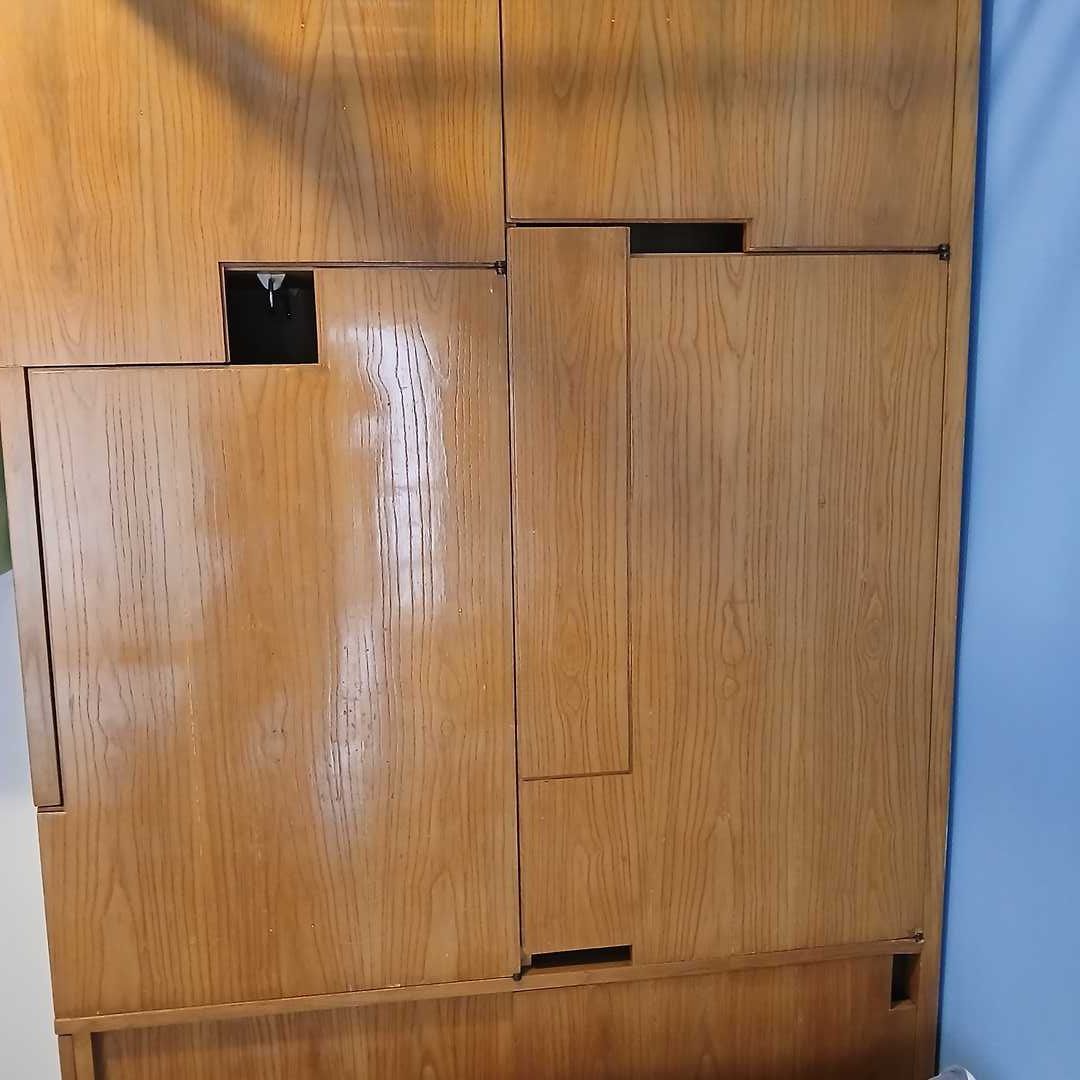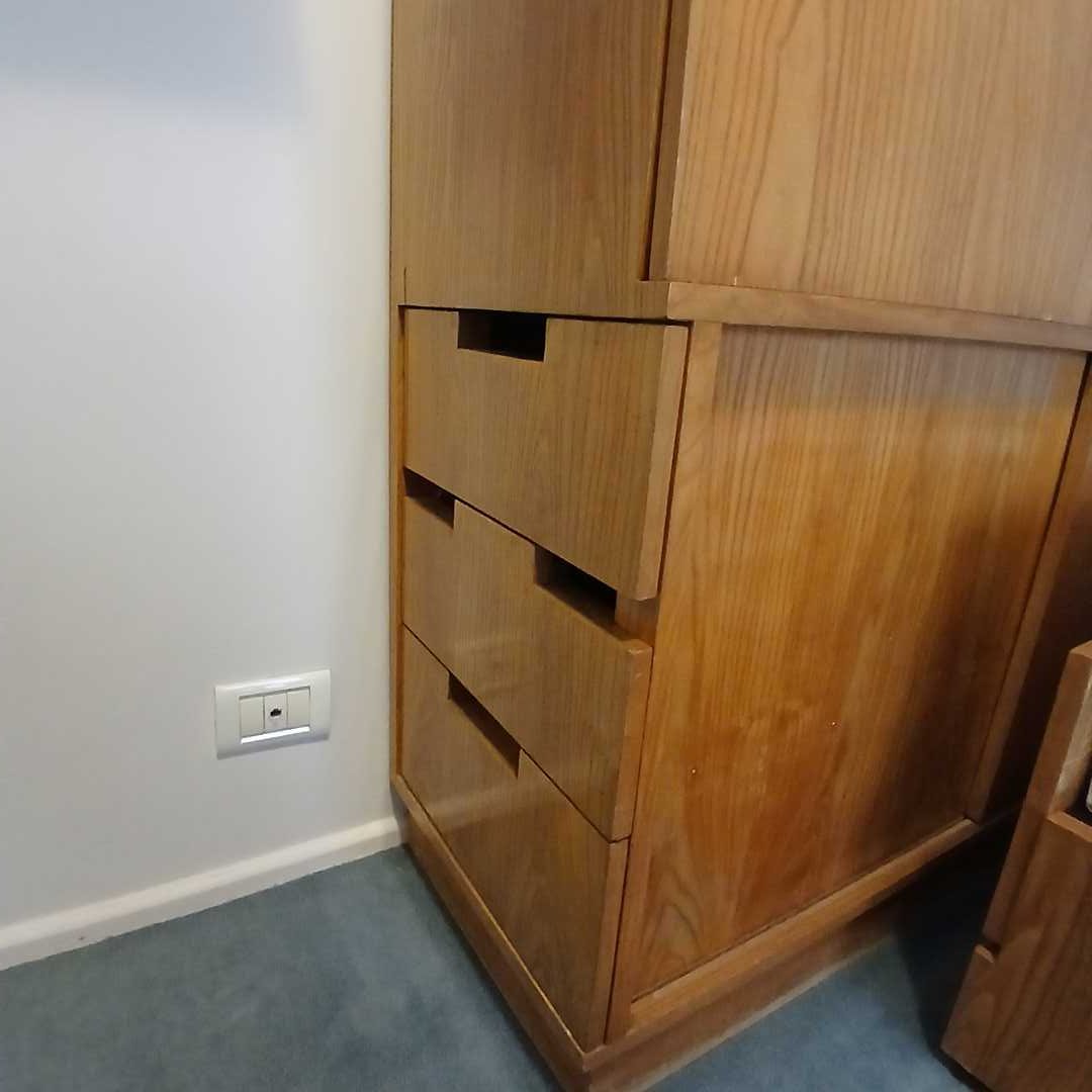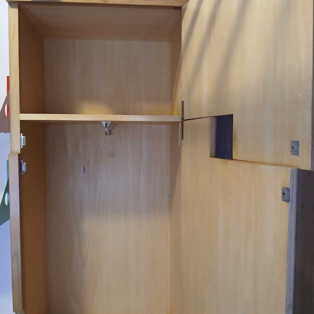 Modular de guardado diseño con cajones y puertas. 118 x 40 cm. Alt 212 cm. Rejilla 145 cm largo. Parte más angosta 60 cm