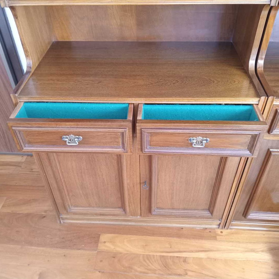Módulo de guardado 4 puertas, 2 cajones y estante. Sin felpa verde en cajón Alt 180 cm. Frente 80 cm. Prof máxima 45 cm. Sin contenido. En la foto se ven dos muebles juntos, pero se venden por separado.