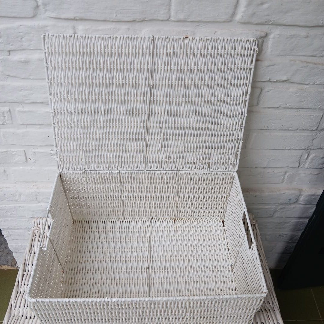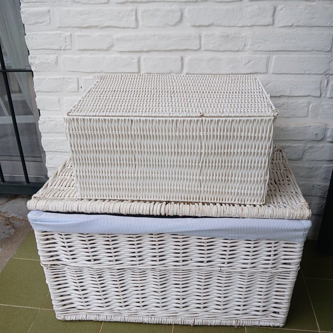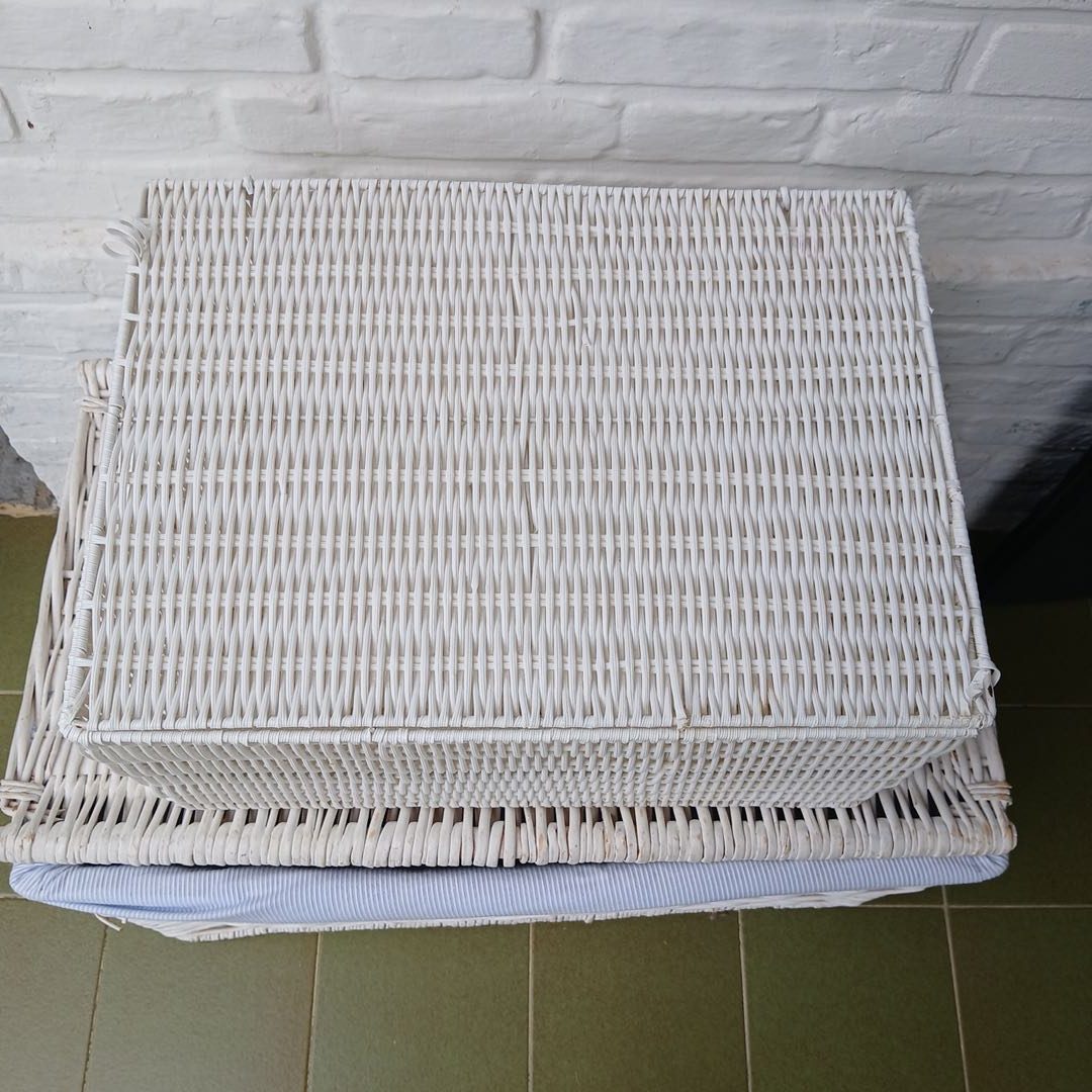 Par de canastos de mimbre 40 x 70 cm Alt 37 cm y Plástico 46 x 32 cm. Alt 23 cm.
