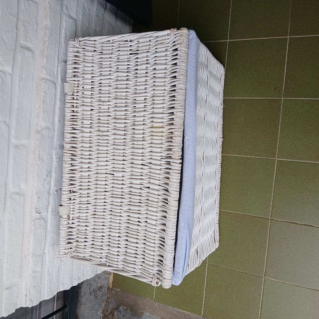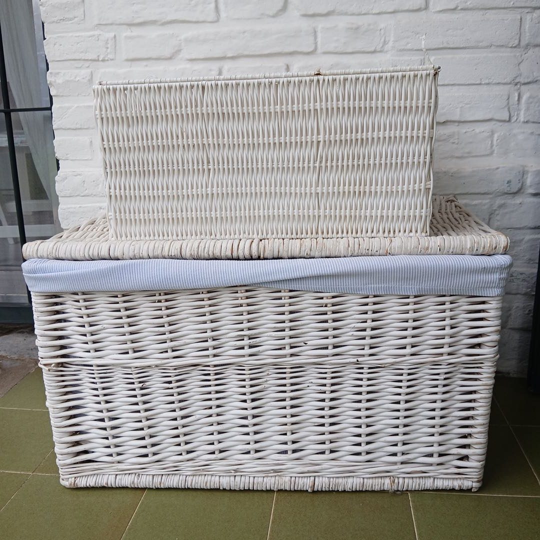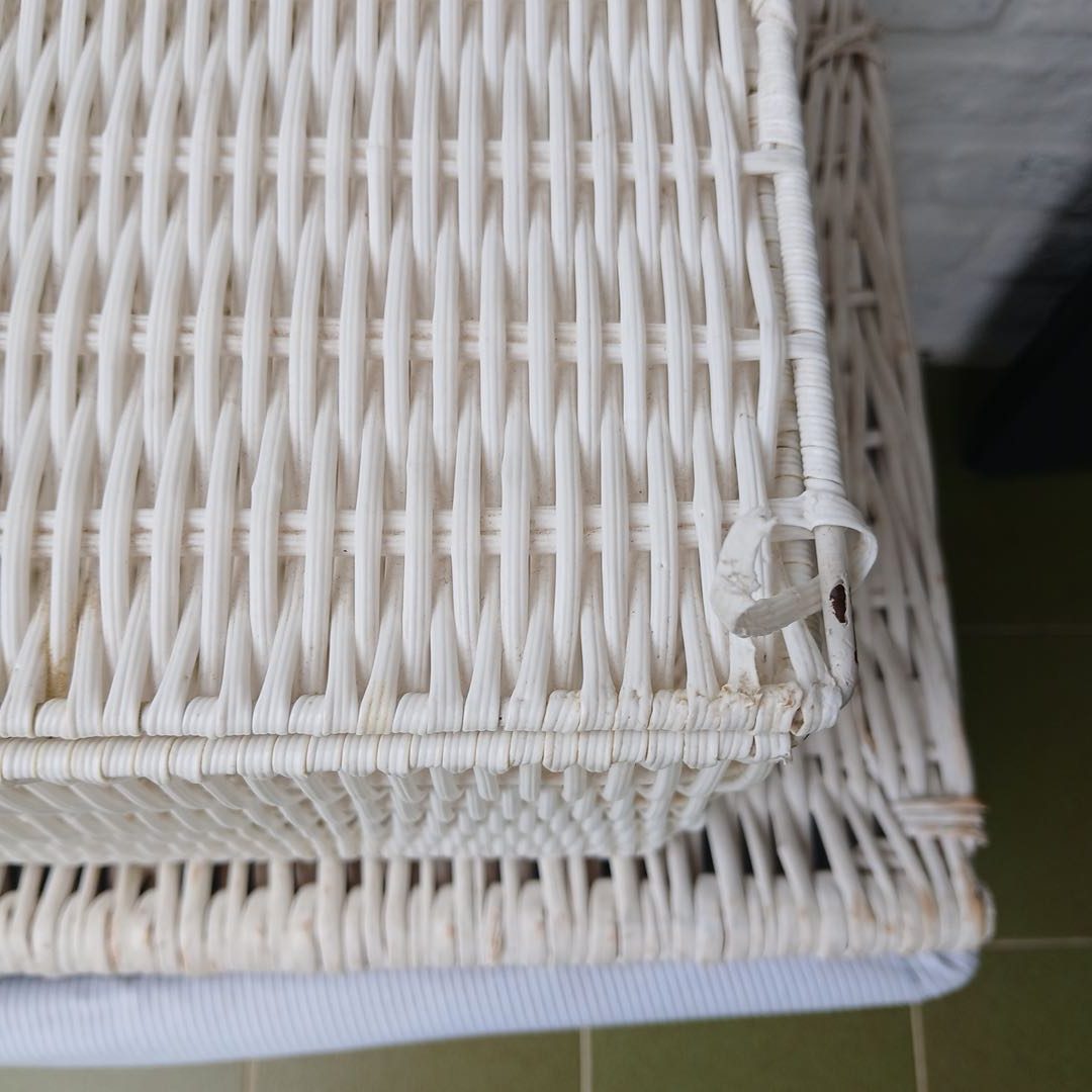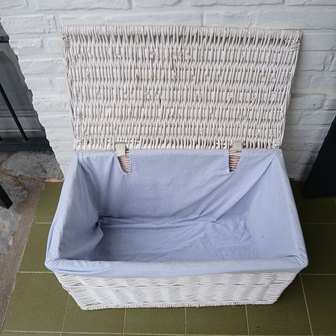 Par de canastos de mimbre 40 x 70 cm Alt 37 cm y Plástico 46 x 32 cm. Alt 23 cm.