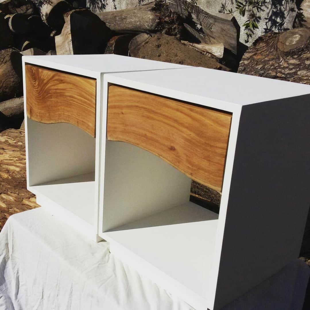 Par de mesas de luz en blanco y madera. 45 x 40 cm. Alt 55 cm. Retiro el viernes 31/10 de 10 a 12 hs por Palermo.