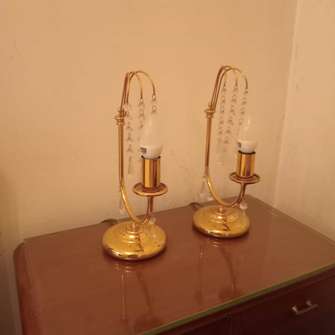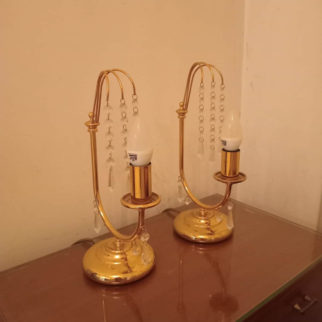 Par de veladores de diseño con caireles. Alt 31 cm.