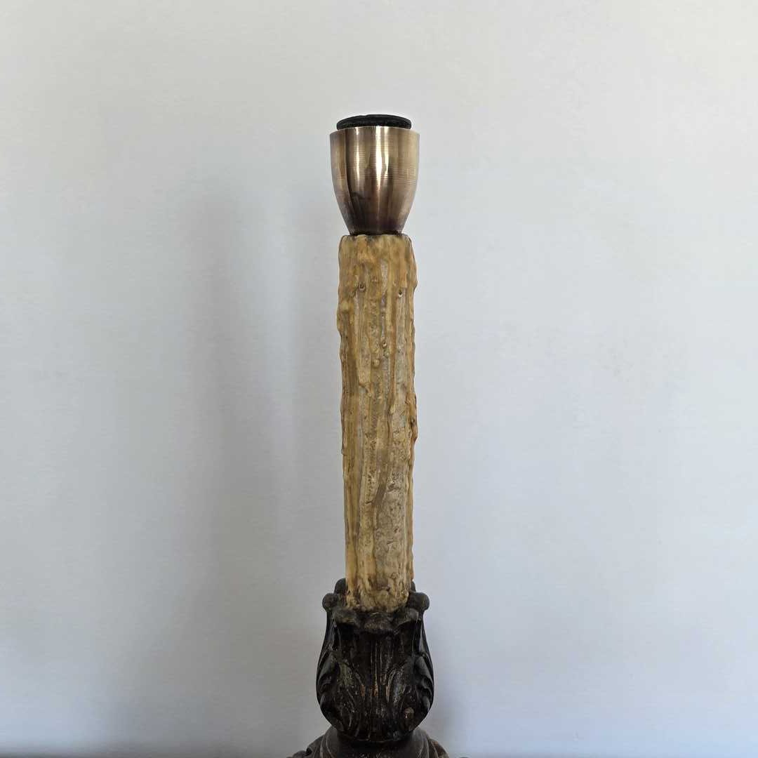 Pie de lámpara en madera estucada con vela superior. 26 cm de radio. Alt 58 cm.