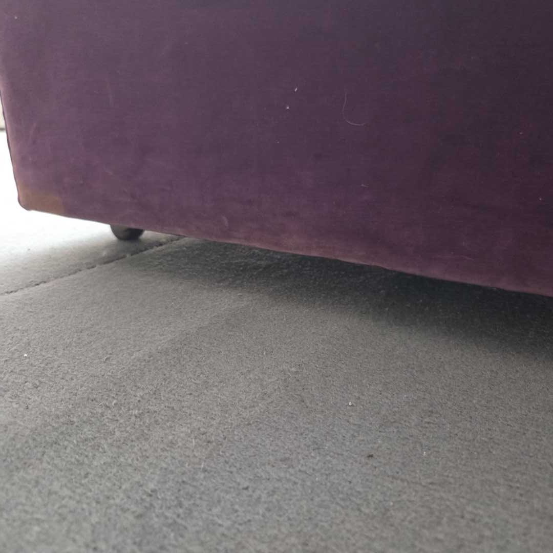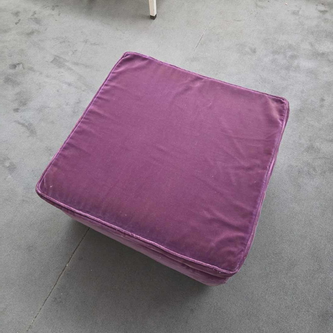 Puff tapizado en pana violeta con ruedas. 62 x 60 x 35 cm alt.