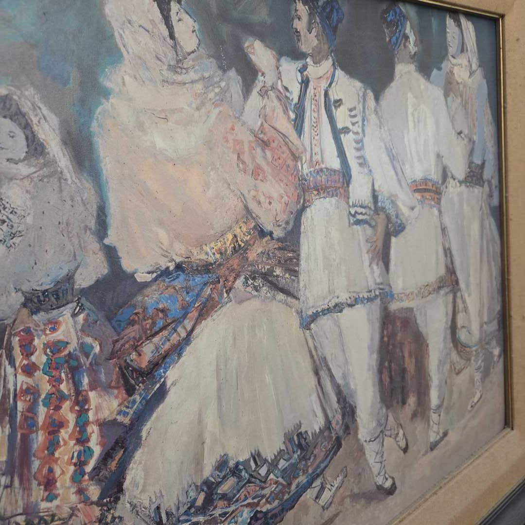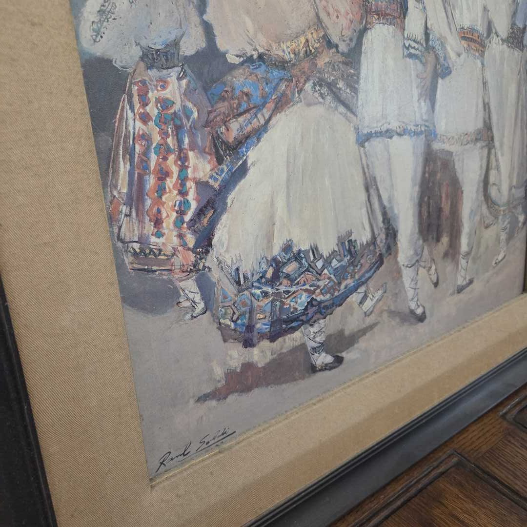 Reproducción “Parejas bailando”, Raúl Soldi. Enmarcada en madera, con desgaste de uso. Medida con marco 66 x 60 cm.