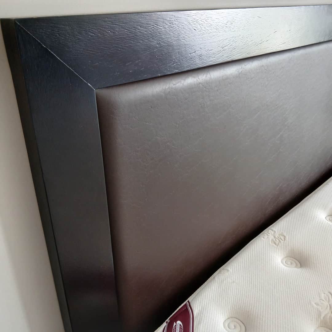 Respaldo de cama en madera con centro tapizado en eco cuero color chocolate. 190 x 122 cm.