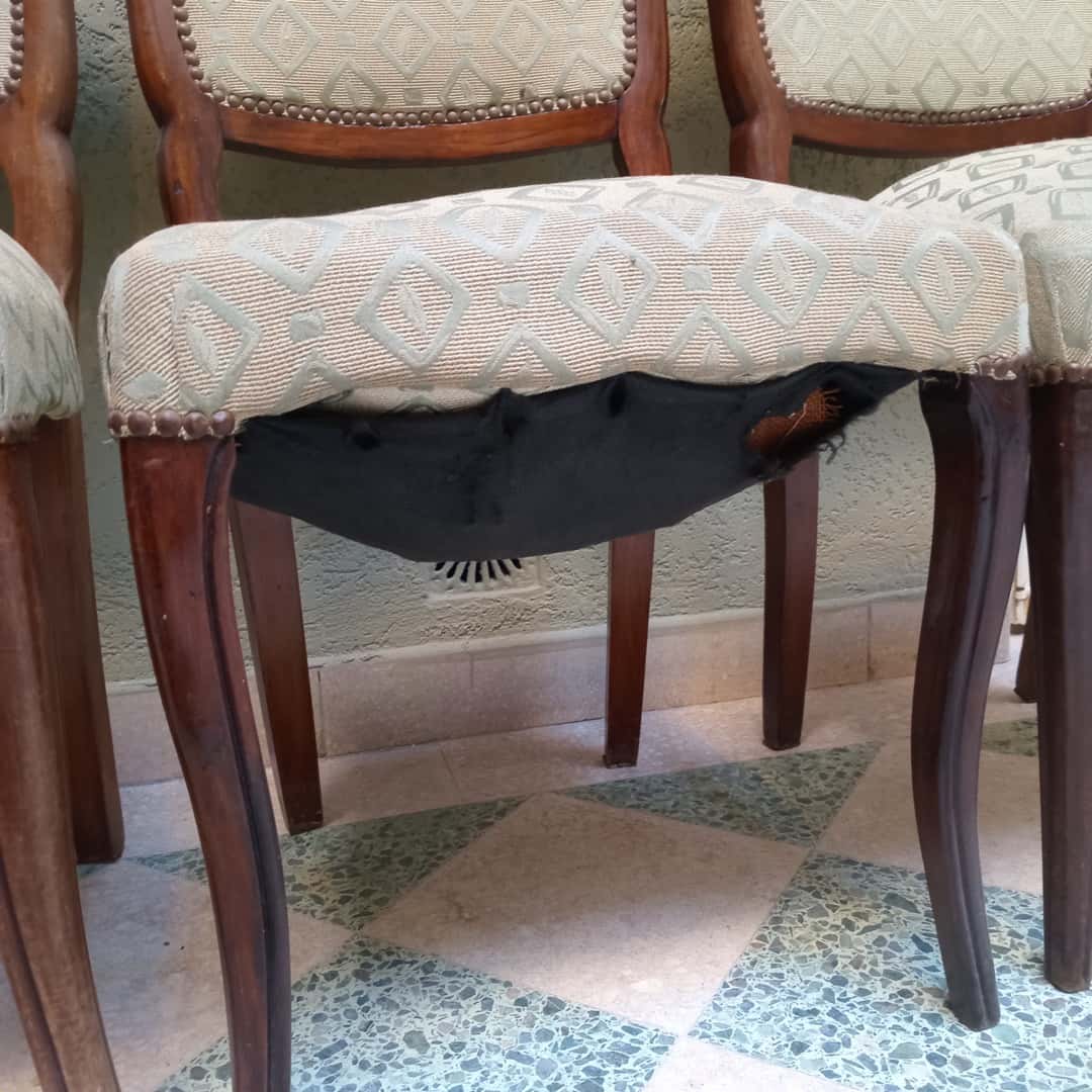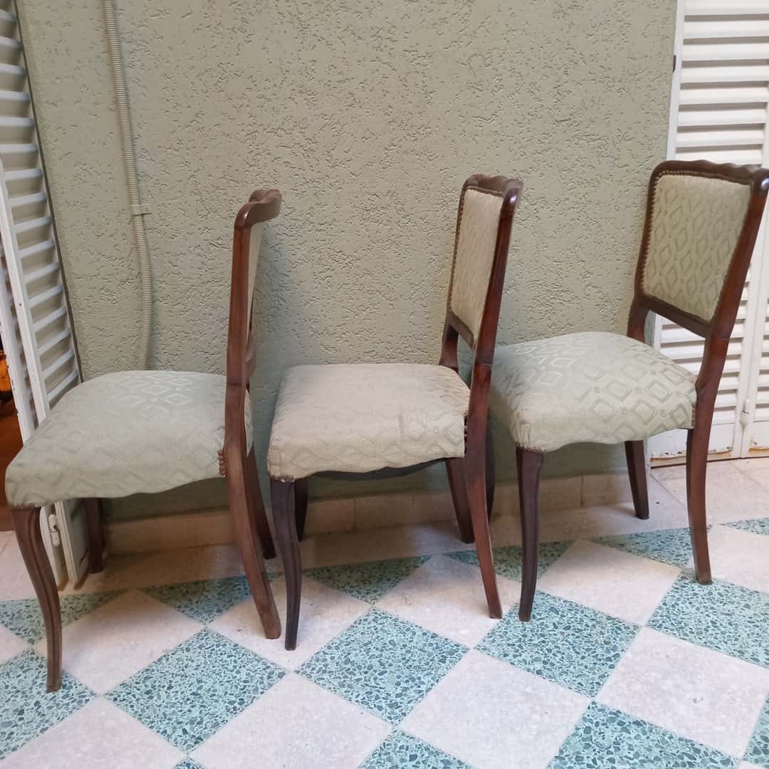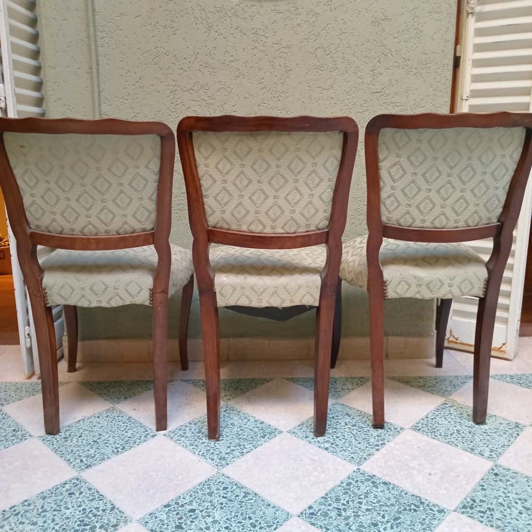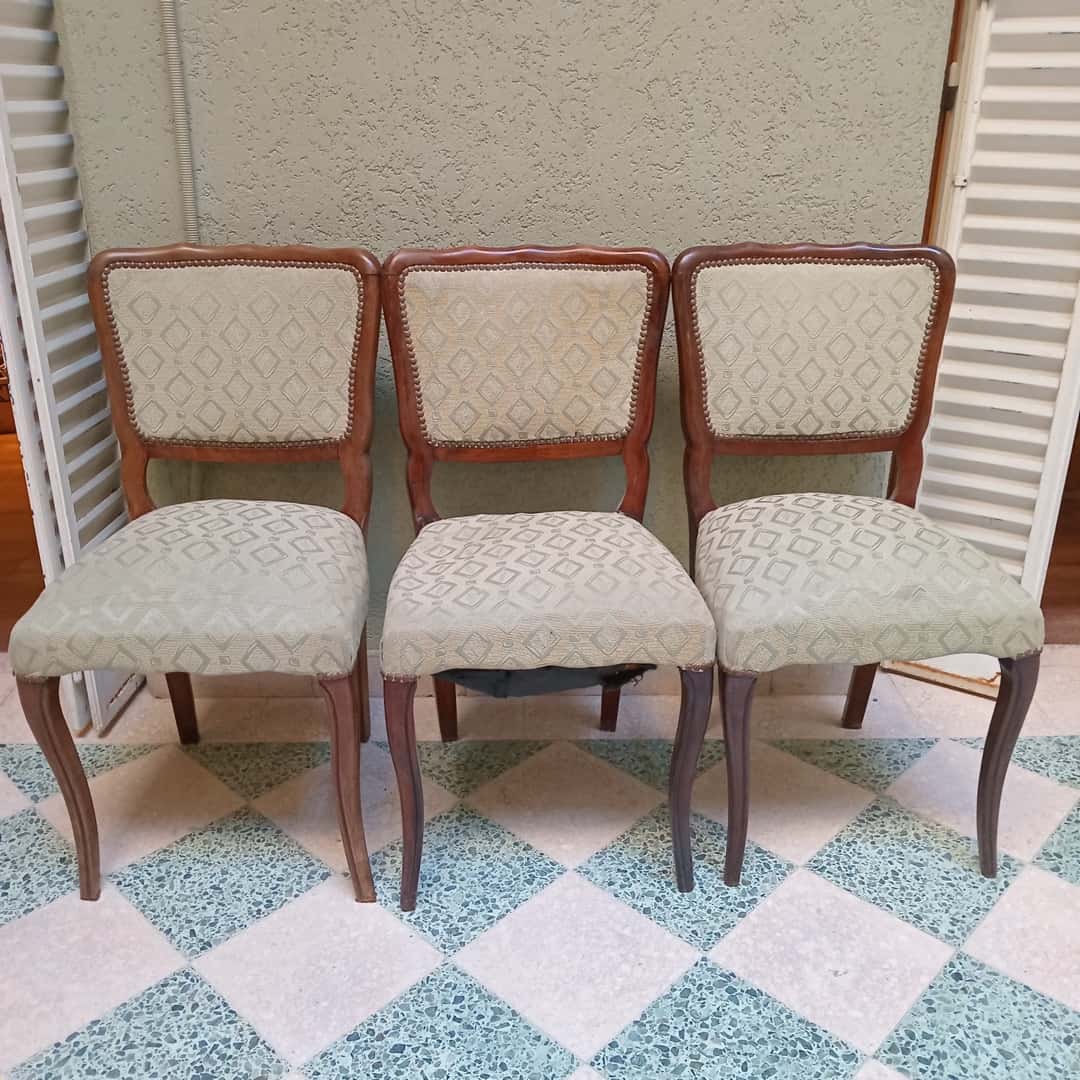 3 sillas tapizadas con dibujos. Una con avería, para restaurar (ver fotos). 36 x 88 cm