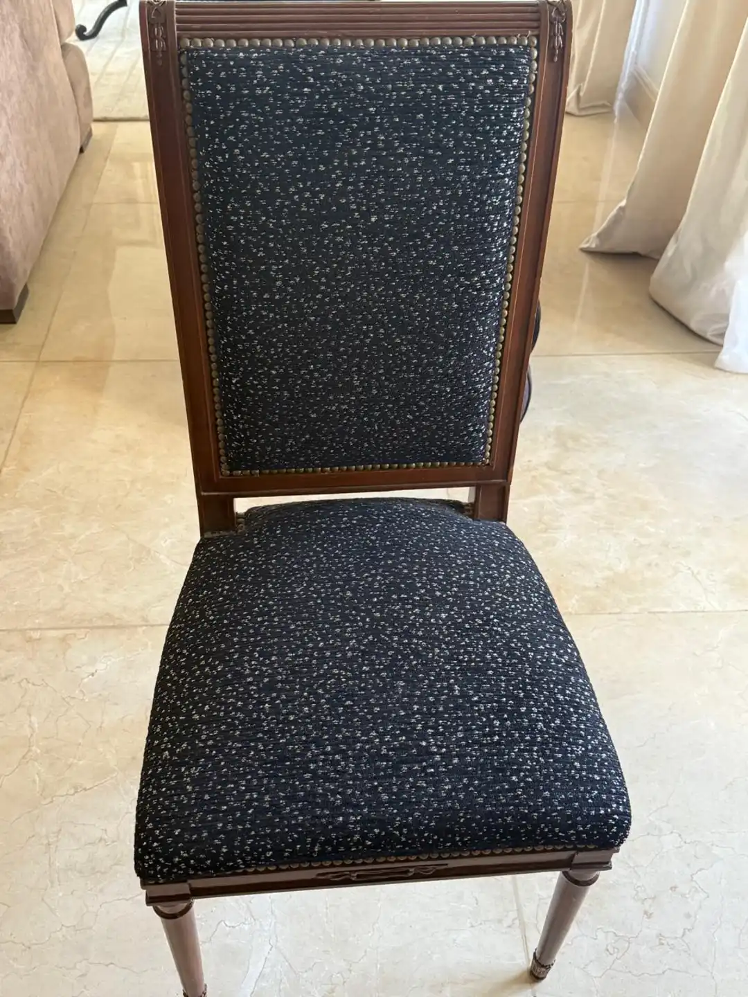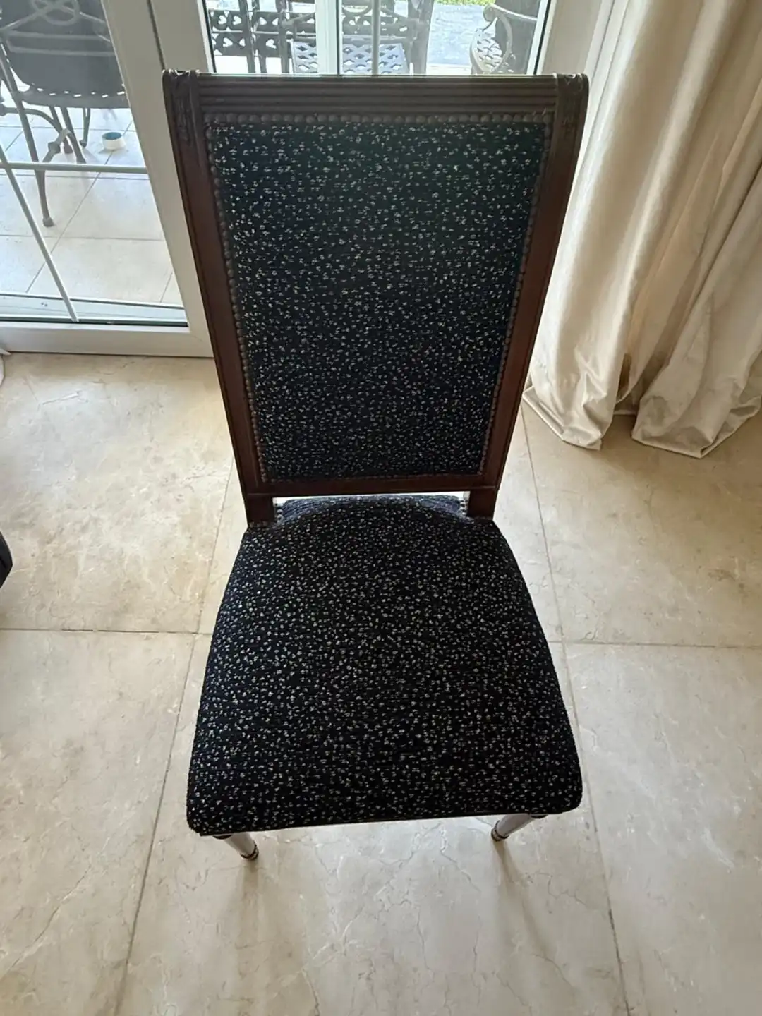 8 sillas estilo inglés tapizadas en pana negra con brillos. Importadas. En Excelente estado.