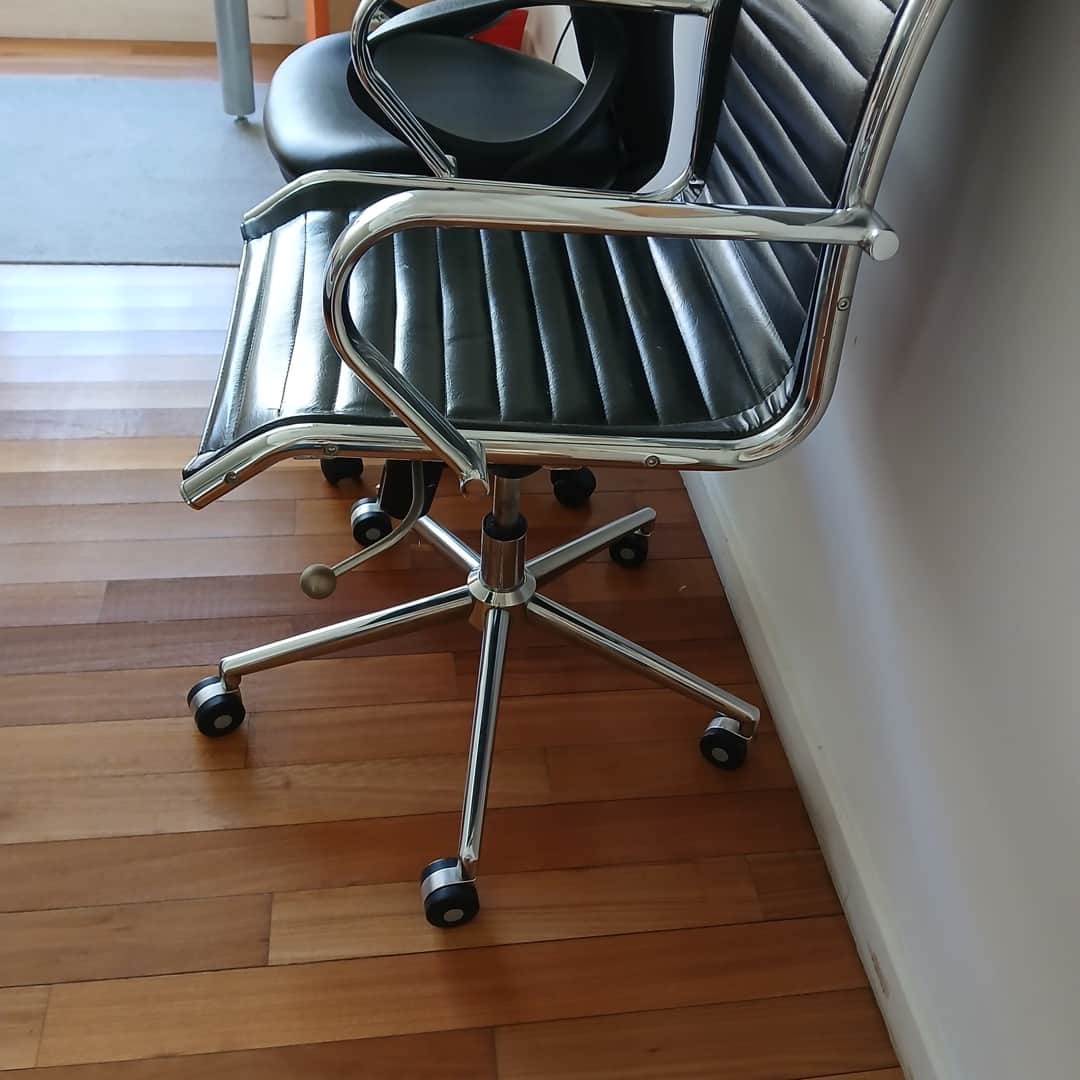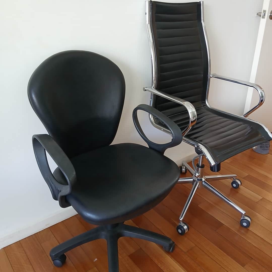 Silla para PC negra altura regulable + silla para Pc estructura cromada y asiento eco cuero 50 x 54 x 116 cm + Corcho de pared.