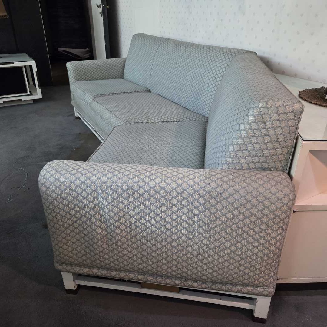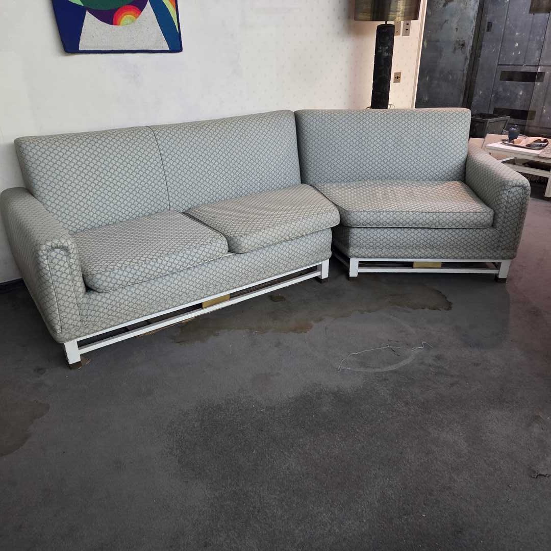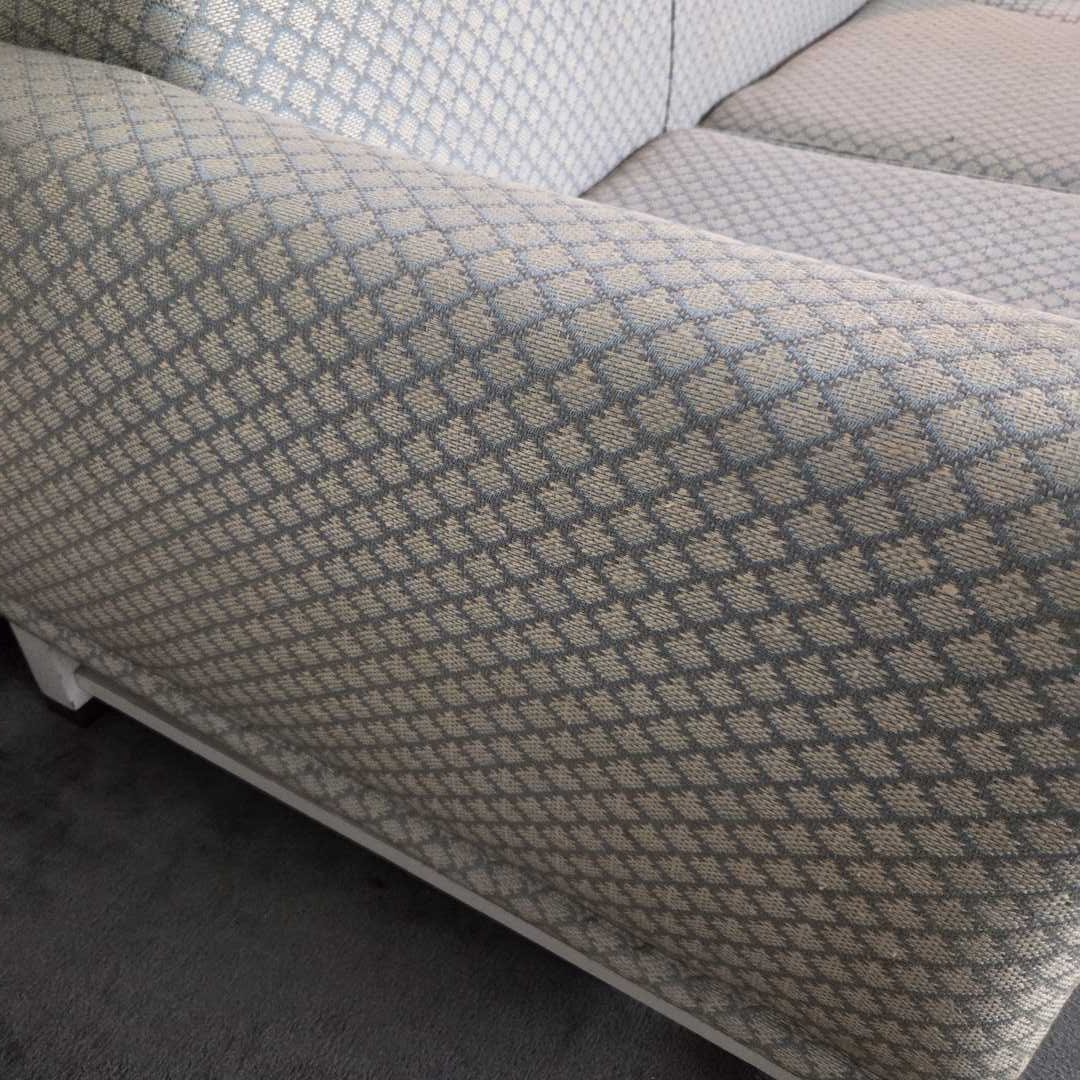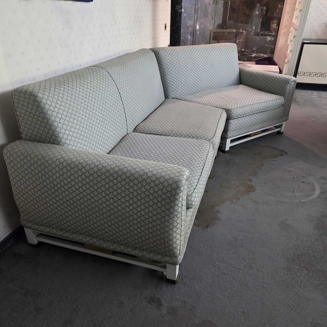 Sillón 3 cuerpos en 2 módulos tapizados en pana celeste. Medida mód 1: 166 x 80 x 87 cm. Medida mód 2: 115 x 80 x 87 cm. Medida Total: 255 x 80 x 87 cm. Atención: baja 6 pisos por escalera.