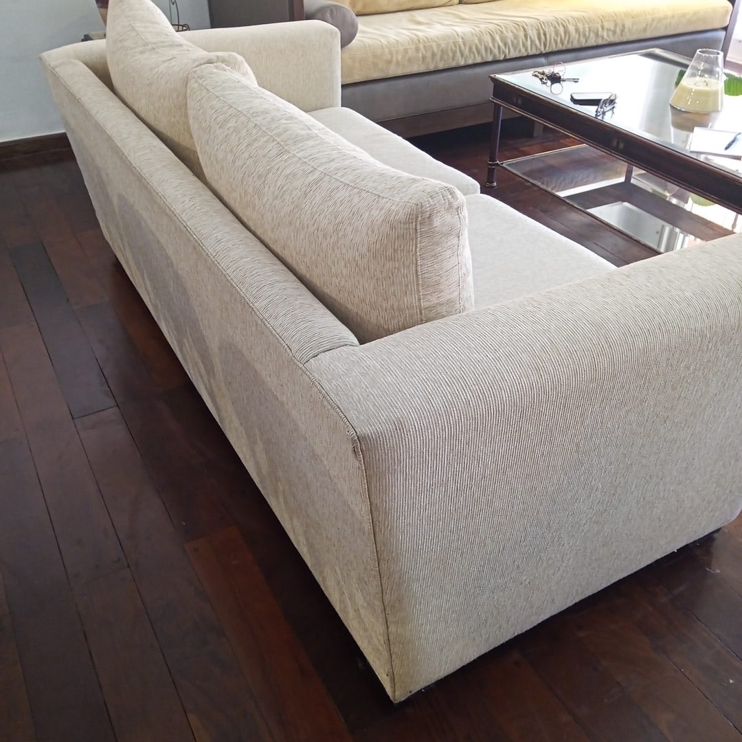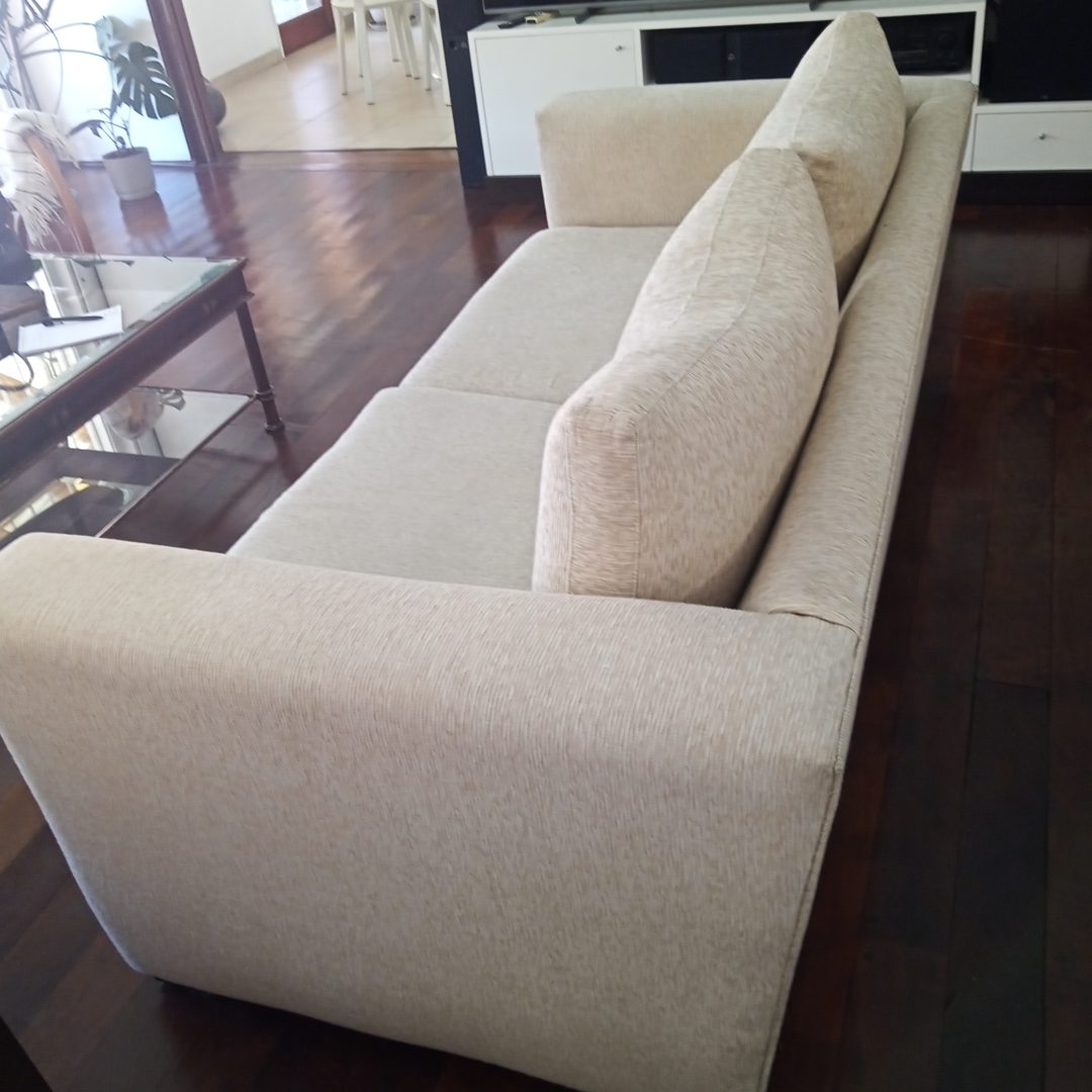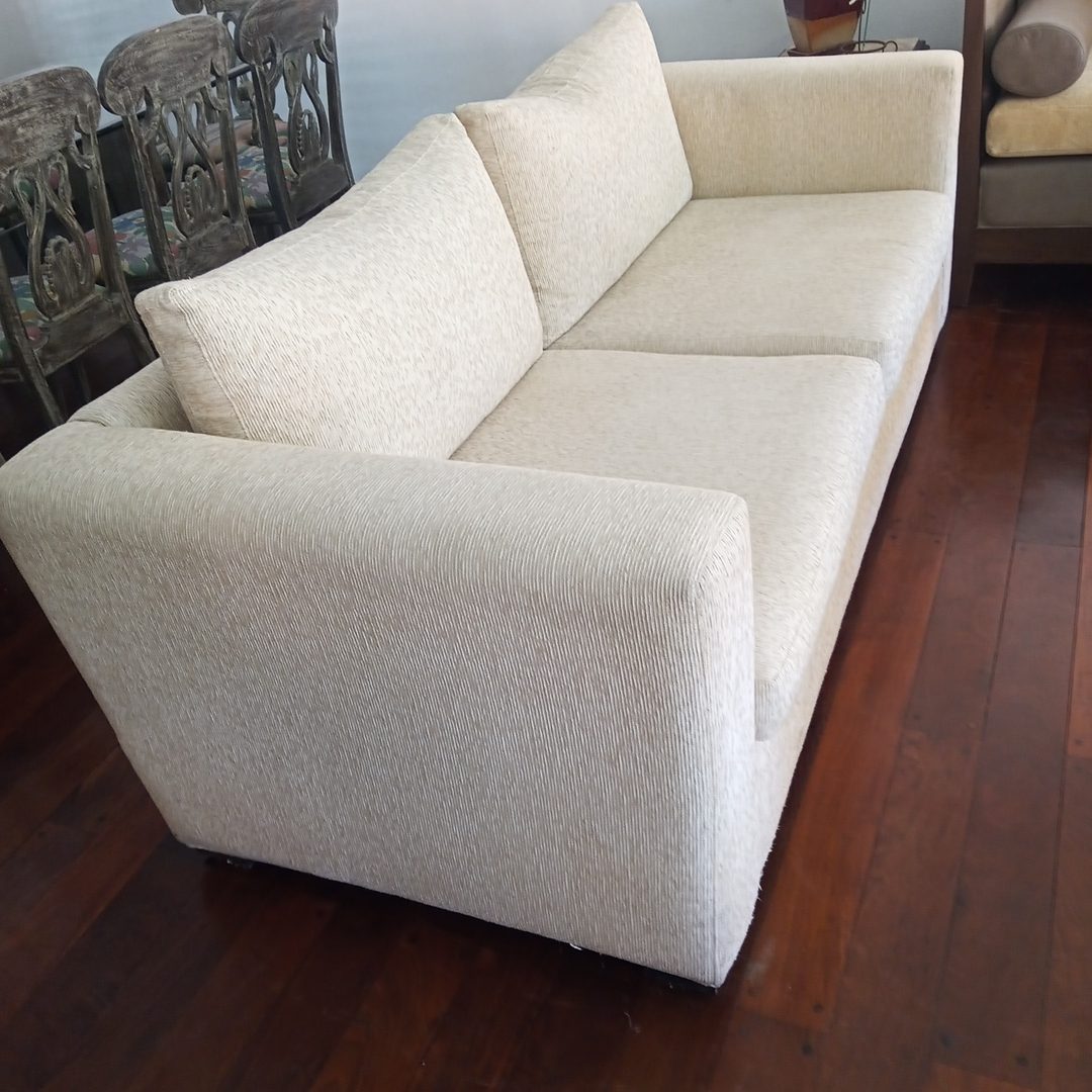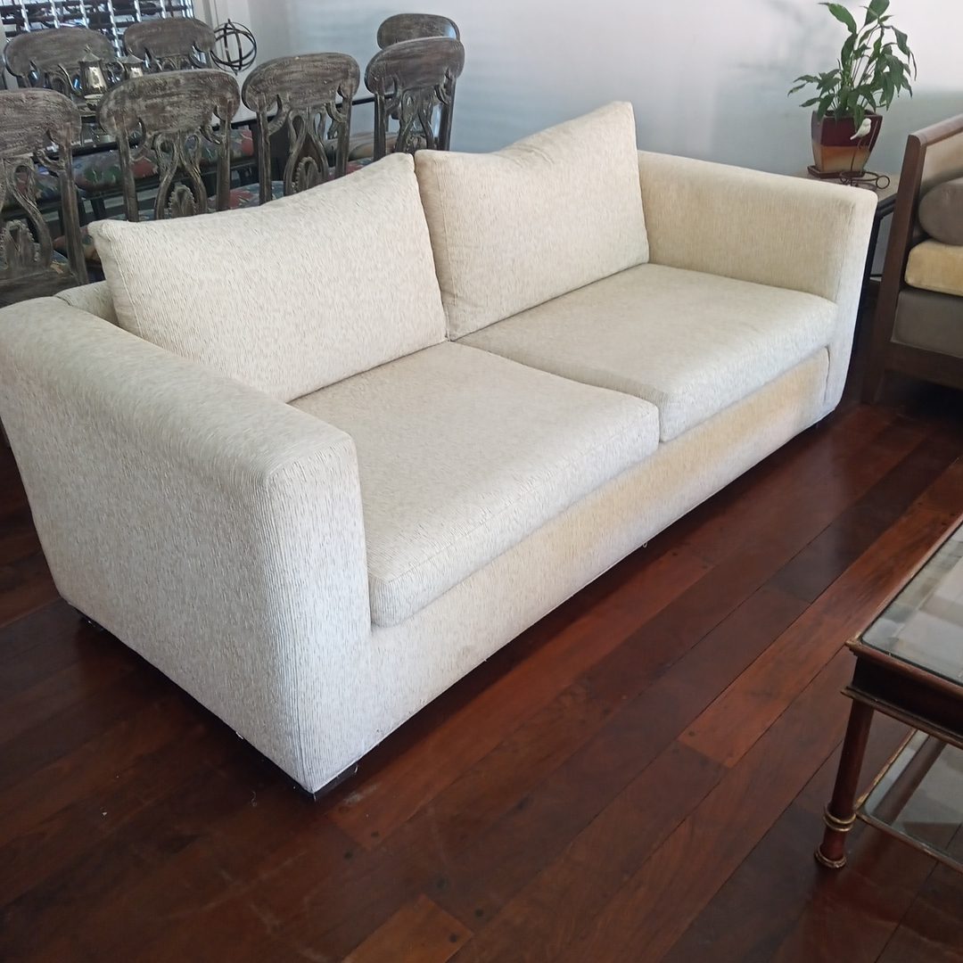 Sofá 3 cuerpos en chenil natural. 203 x 97 cm. Alt 71 cm.