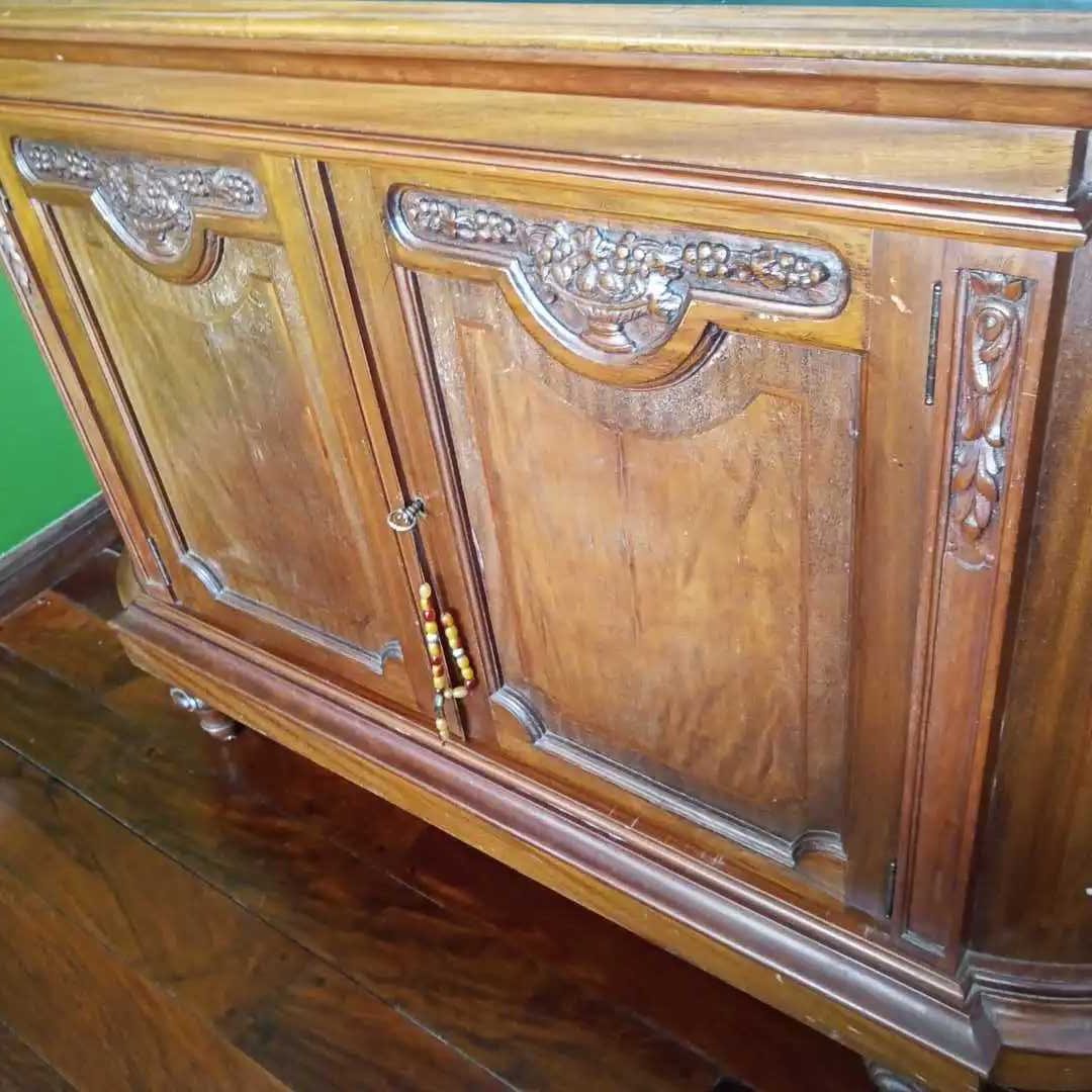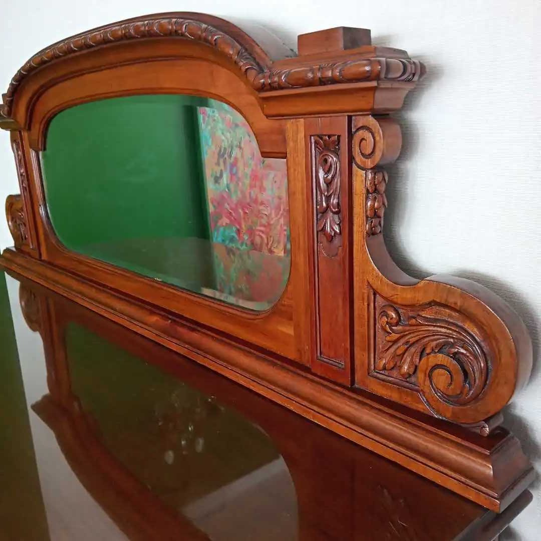 Vajillero 2 puertas y alzada con espejo biselado. Parte superior protegida con vidrio. No se incluye el contenido. 160 x 57 cm. Alt 55 cm.
