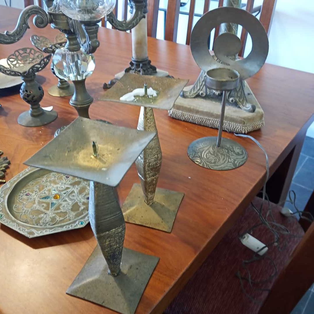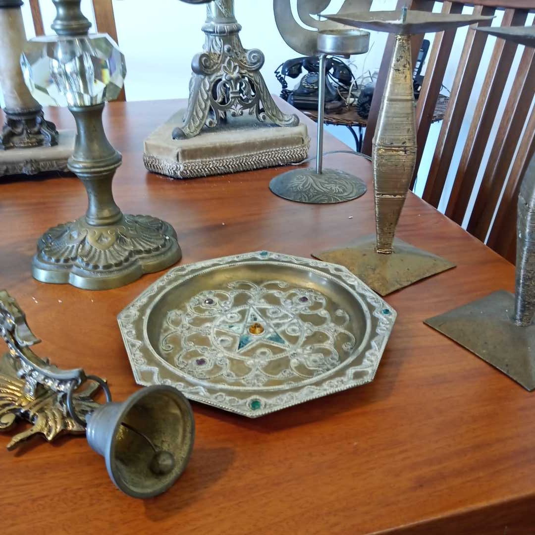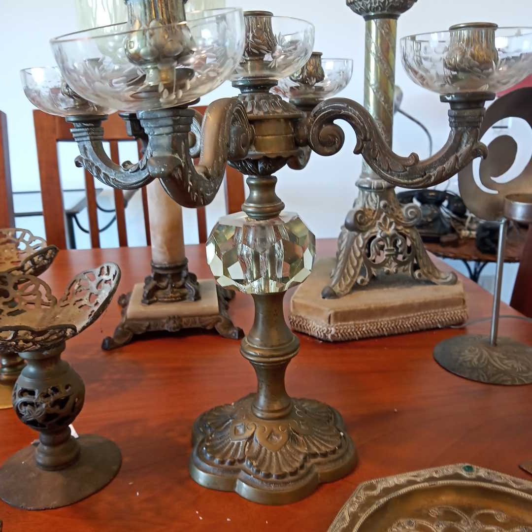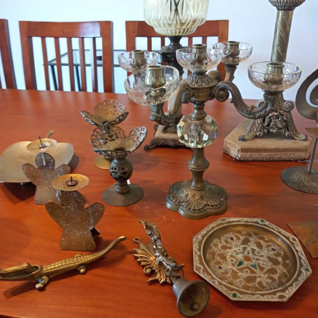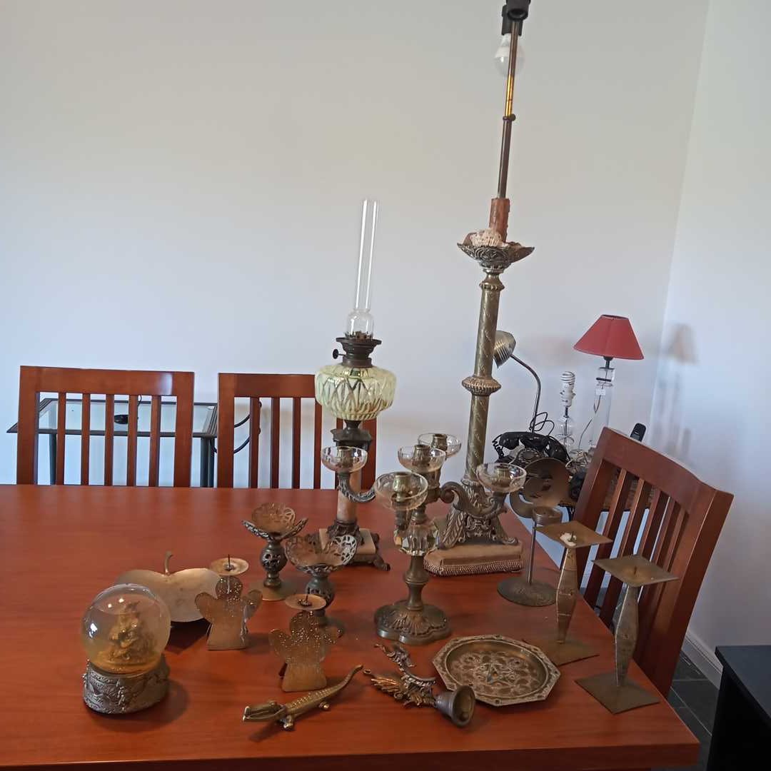 15 piezas: Iluminación, antigüedades, porta velas y más. Alto candelabro 4 luces 32 cm.