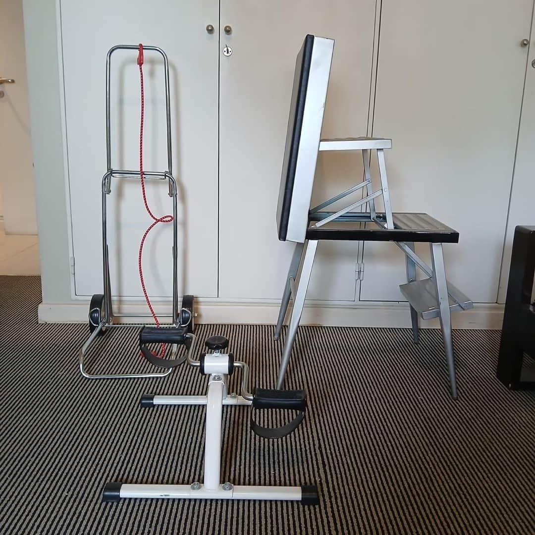 Carro + Pedalera mini plegable + Banco escalera 35 x 46 cm. Alt 90 cm.