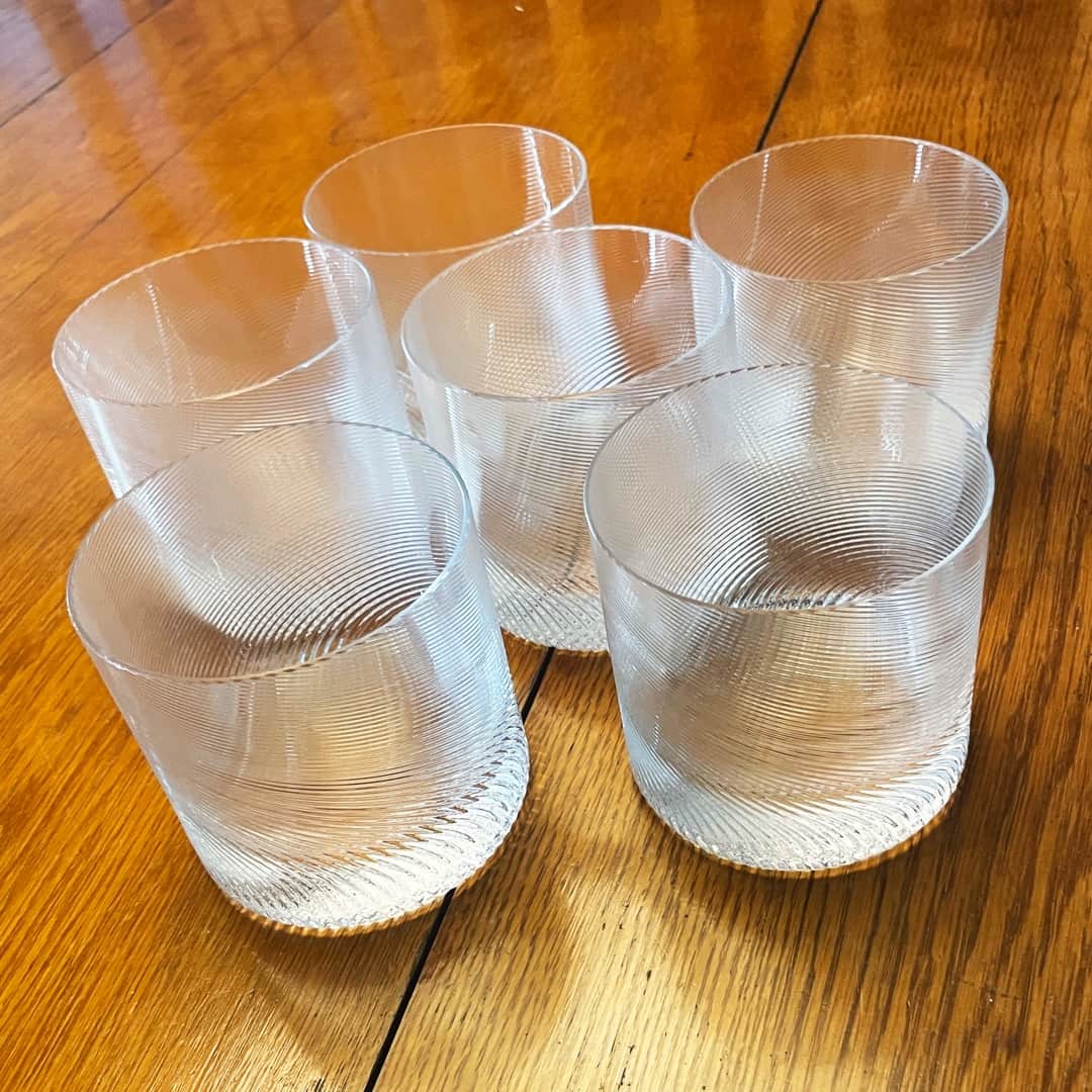 Lote de 12 vasos, 6 de whisky estriados. Altura 8,5 cm + 6 vasitos de licor. Altura 6 cm. Mínimo chip en 1 vaso de whisky