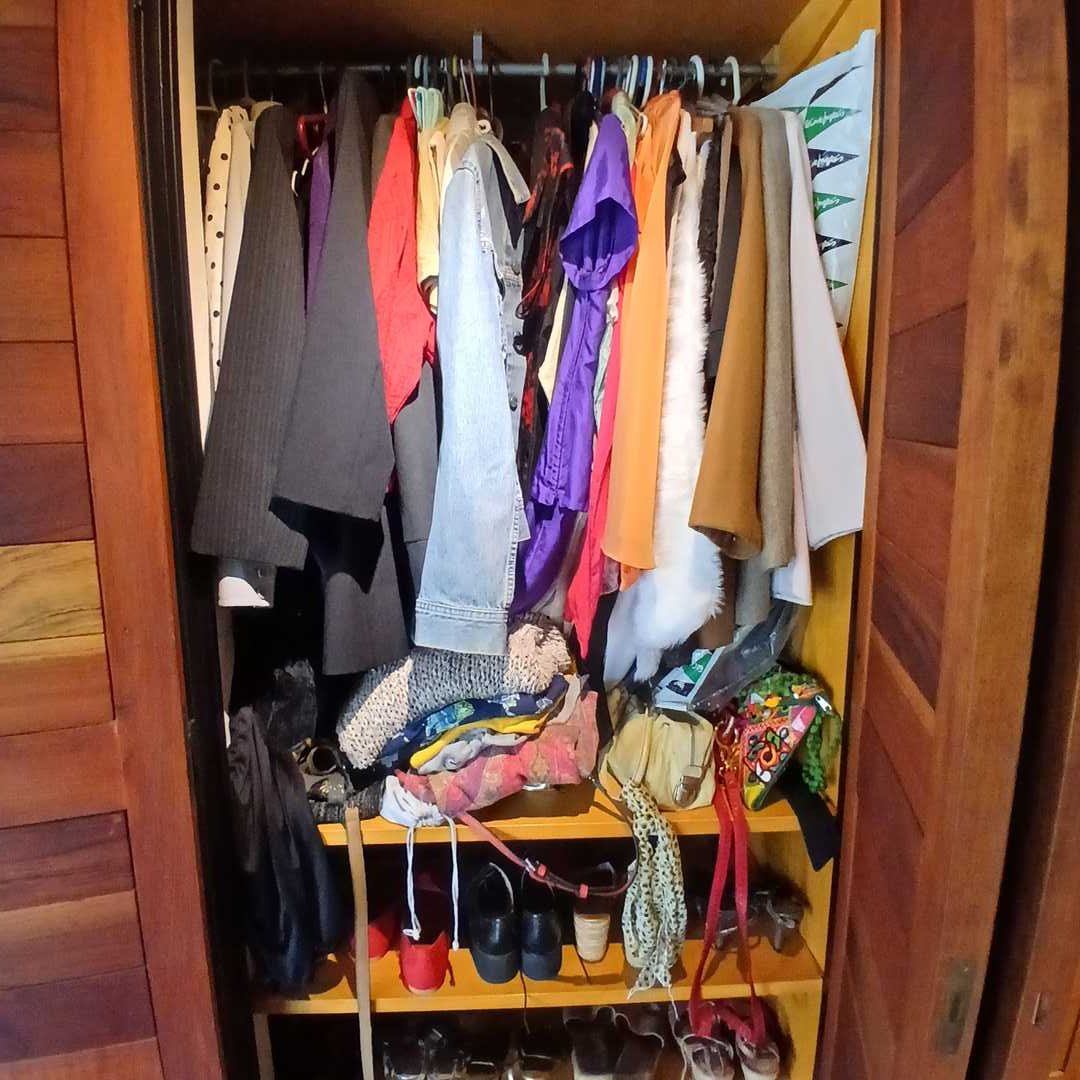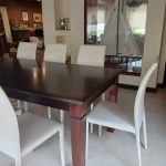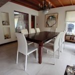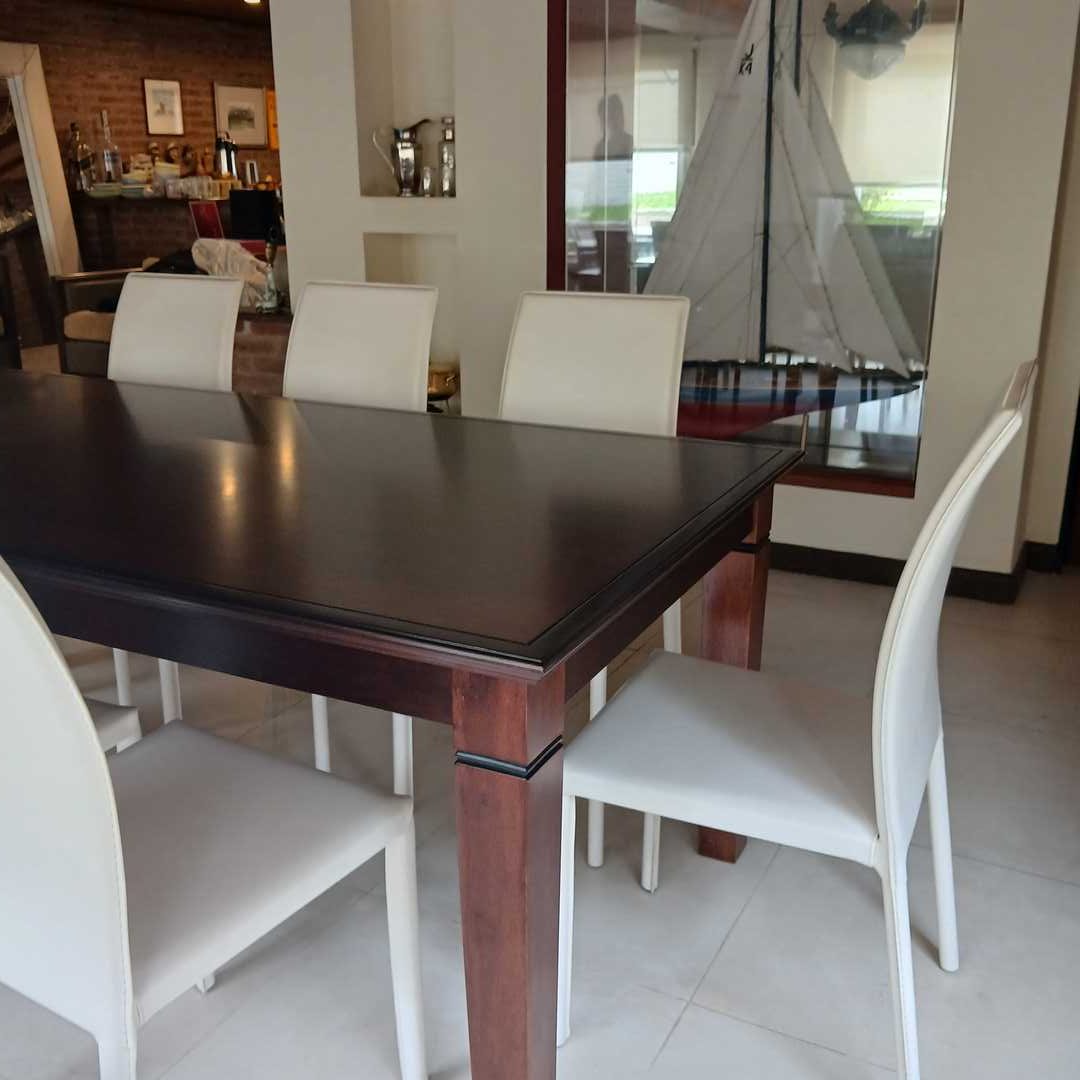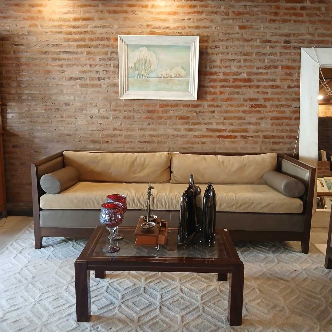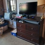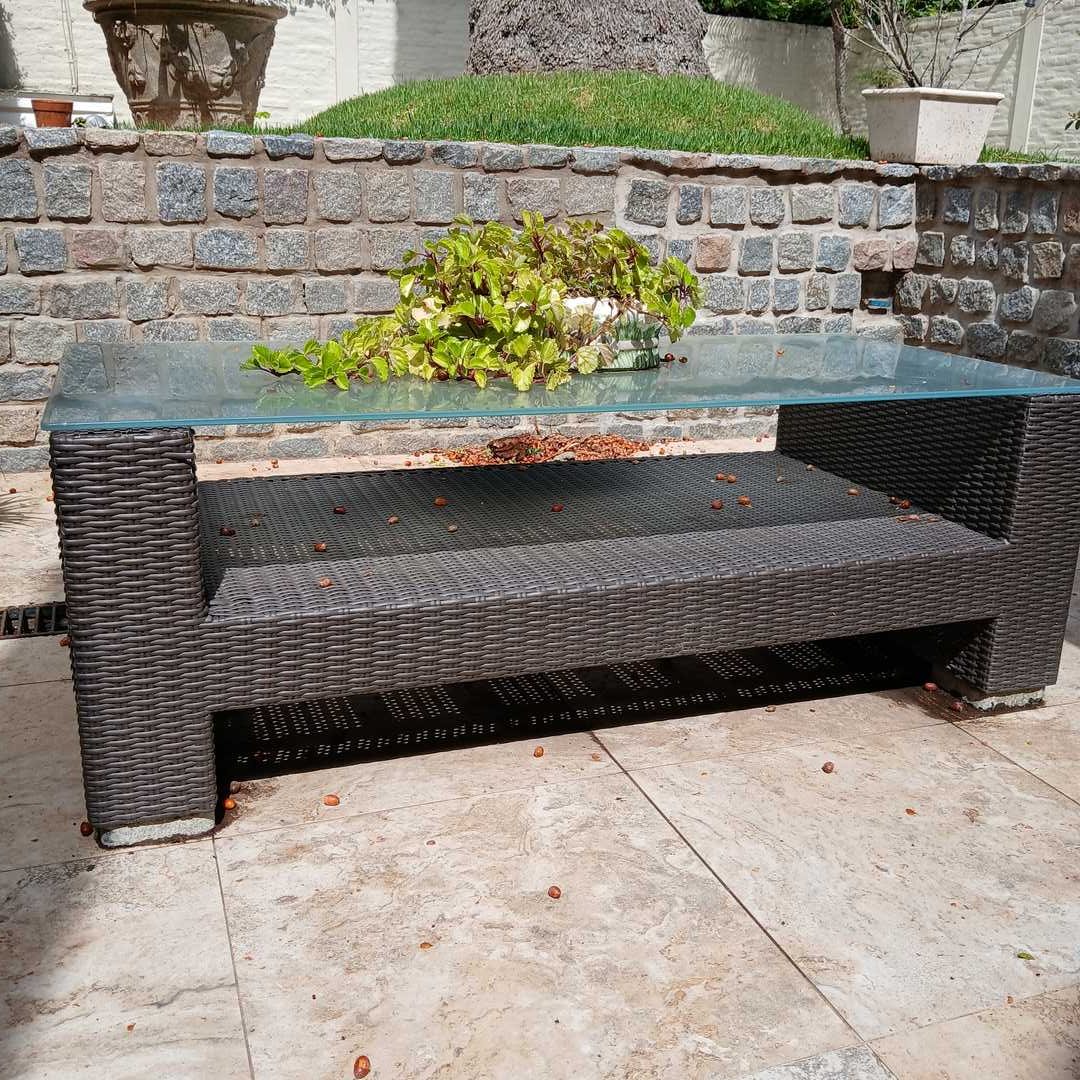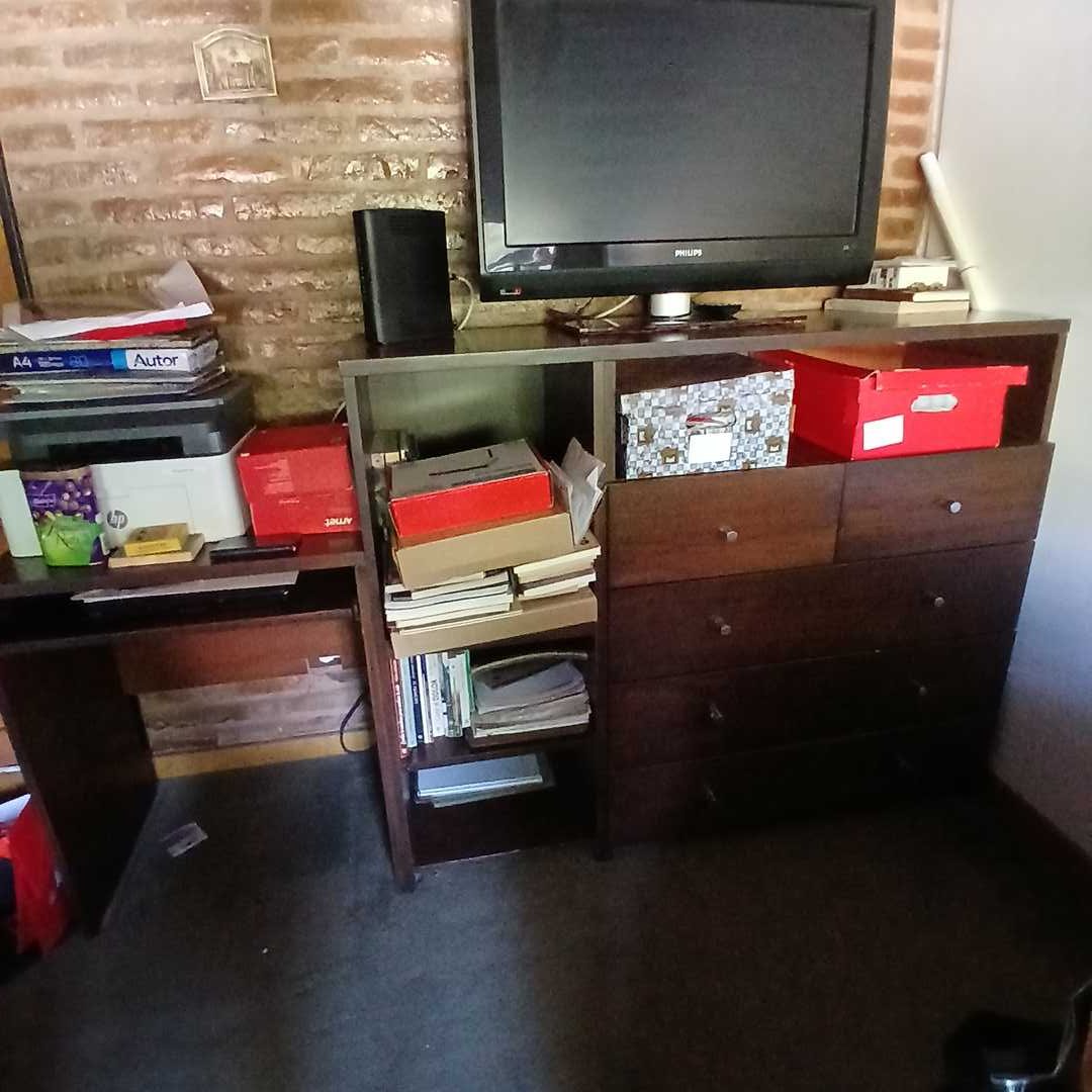 Sofá 3 cuerpos y 1 cuerpo diseño Eugenio Aguirre con base de madera; par sillas estilo Inglés; mesas auxiliares: baja en ratán y vidrio, con tapa de vidrio, para TV, de comedor diario negra, otras; comedor diseño: mesa estilo biedermeier con 8 sillas eco cuero blanco; mueble 2 planos consola, otros bajo 2 cajones y 2 puertas, bajo 3 cajones y 3 puertas, bajo con 8 cajones; mueble para TV con 4 cajones y nicho; escritorio en melanina, cajonera, silla PC-Adornos y vajilla: lote servicio loza Inglesa; cristalería, juego copas, vasos, par copones color; balanza de joyero y de almacén base de mármol y pesas; teléfono candelero negro; espejo de pie patinado en blanco; cuadros decorativos; antigua araña 6 luces; lámparas de mesa bronce-LCD LG; parrilla fuera de borda; vajilla diario, enseres cocina; juego de jardín en ratán sintético: mesa oval y 6 silloncitos; libros; cd´s-Ropa de hombre y mujer, primeras marcas y más…