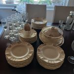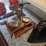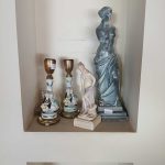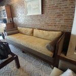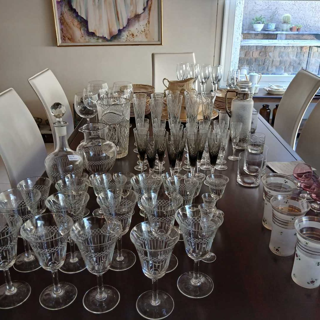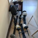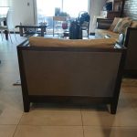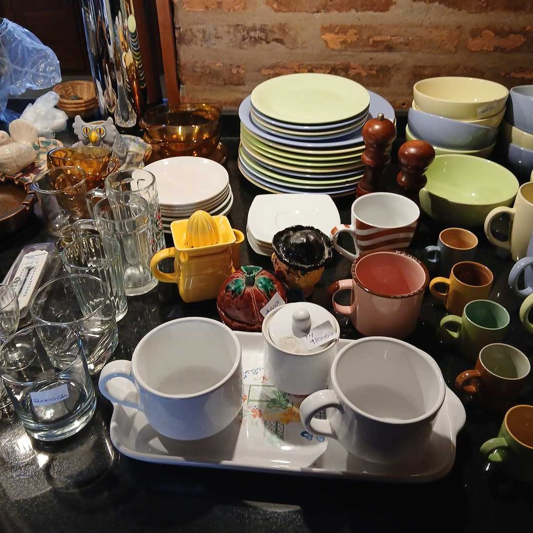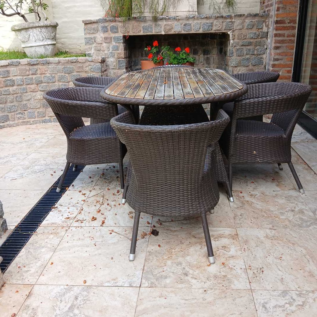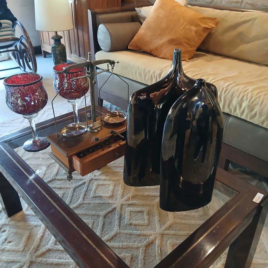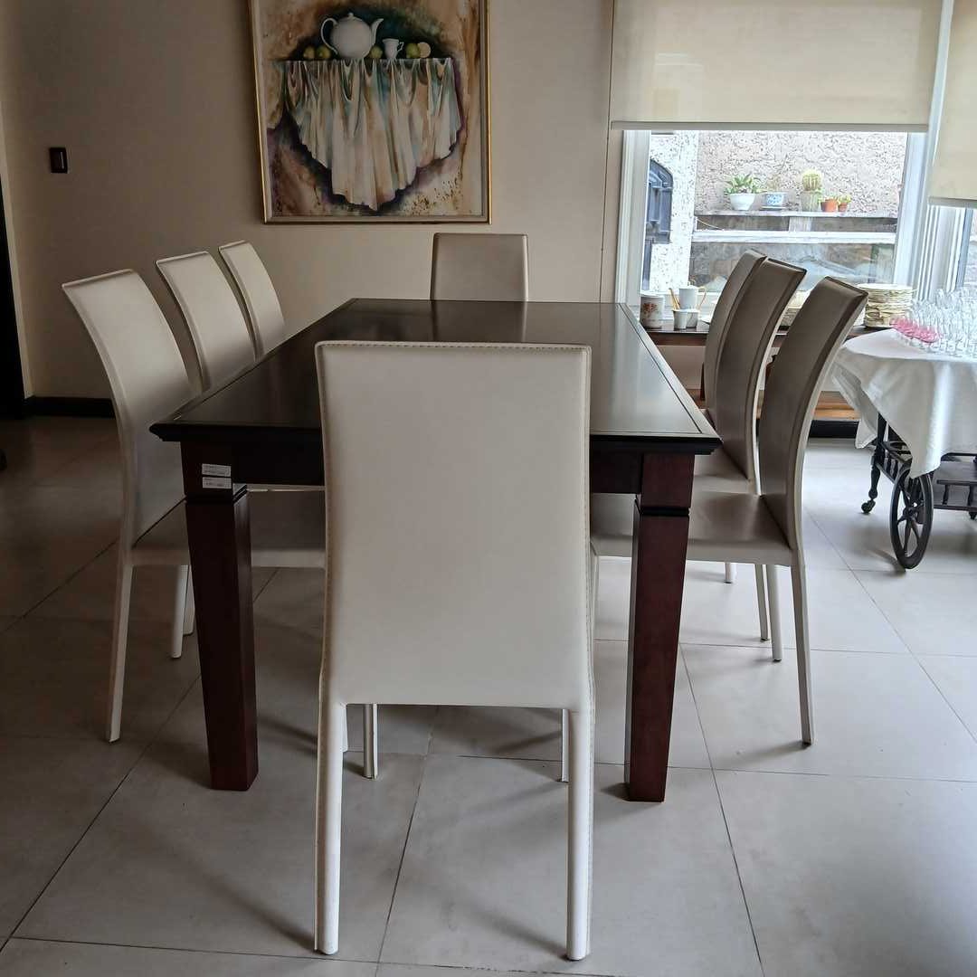 Sofá 3 cuerpos y 1 cuerpo diseño Eugenio Aguirre con base de madera; par sillas estilo Inglés; mesas auxiliares: baja en ratán y vidrio, con tapa de vidrio, para TV, de comedor diario negra, otras; comedor diseño: mesa estilo biedermeier con 8 sillas eco cuero blanco; mueble 2 planos consola, otros bajo 2 cajones y 2 puertas, bajo 3 cajones y 3 puertas, bajo con 8 cajones; mueble para TV con 4 cajones y nicho; escritorio en melanina, cajonera, silla PC-Adornos y vajilla: lote servicio loza Inglesa; cristalería, juego copas, vasos, par copones color; balanza de joyero y de almacén base de mármol y pesas; teléfono candelero negro; espejo de pie patinado en blanco; cuadros decorativos; antigua araña 6 luces; lámparas de mesa bronce-LCD LG; parrilla fuera de borda; vajilla diario, enseres cocina; juego de jardín en ratán sintético: mesa oval y 6 silloncitos; libros; cd´s-Ropa de hombre y mujer, primeras marcas y más…