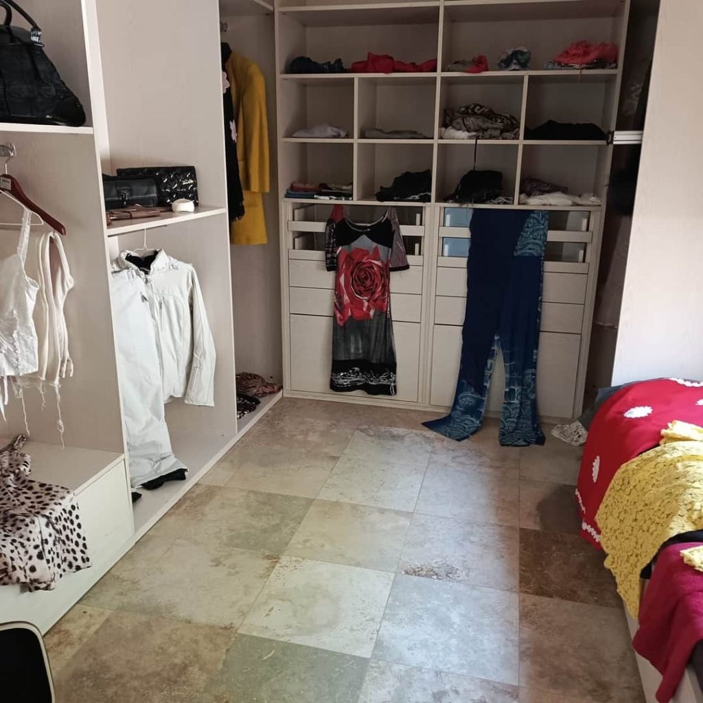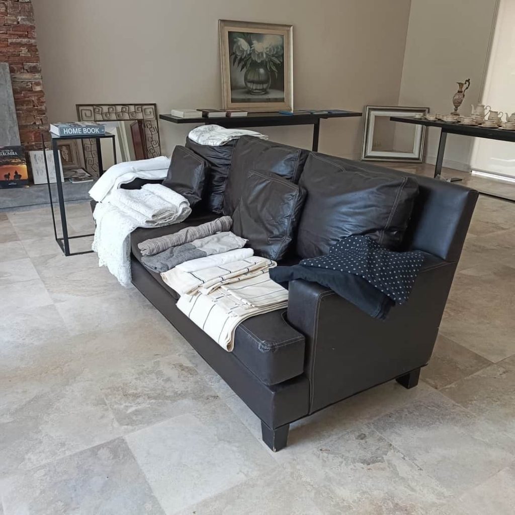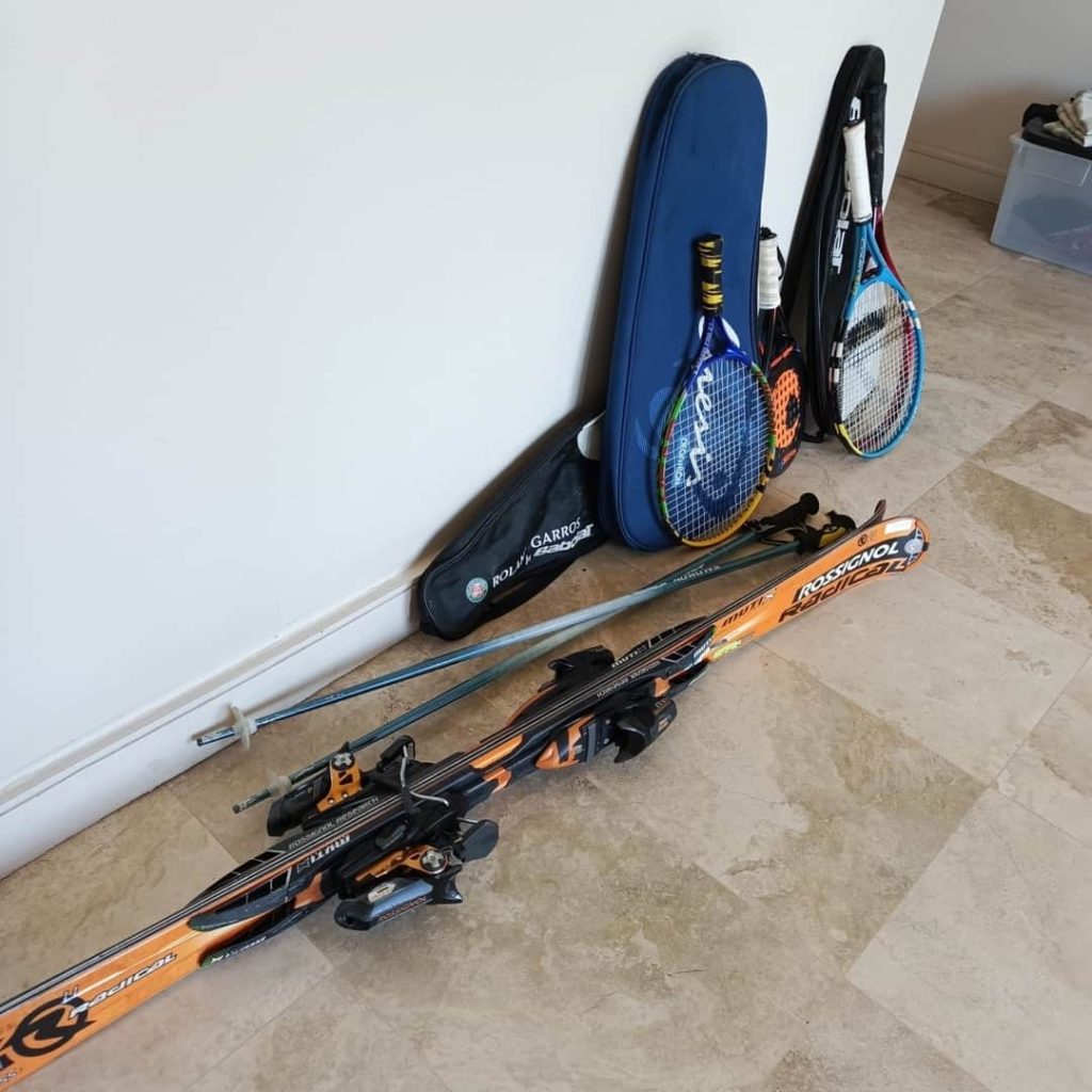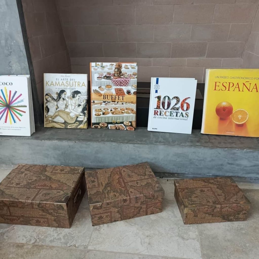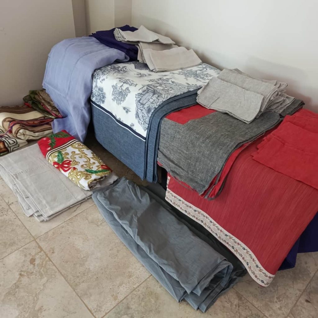 Sofá 3, 4 cuerpos diseño tapizado en lino color champagne; sofá 3 cuerpos en cuero ecológico; mueble oriental con puertas caladas; consola diseño base hierro y mesa de comedor base hierro diseño de Gris Dimensión; escritorio en madera-Adornos y vajilla, servicio de mesa con te y café porcelana nacional; jarra esmaltada con escenas costumbristas; champagnera con luz; par pedestales estructura en hierro y tapa vidrio color; espejo marco hierro diseño, otro biselado marco antiguo; cuadros decorativos y firmados; óleo jarrón con flores Medina, acrílico Cristina Trovato-Cantidad cajas herméticas y accesorios de juego; enseres de cocina; libros; valijas; 2 mesas diseño aluminio más sillas y 3 reposeras de “Gris Dimensión”; accesorios deportivos: rollers, raquetas, accesorios de ski, salvavidas, otros; cantidad manteles bordados y otros-Ropa mujer: Just Cavalli, Zara, Guss, marcas Italianas y otras; accesorios y más…