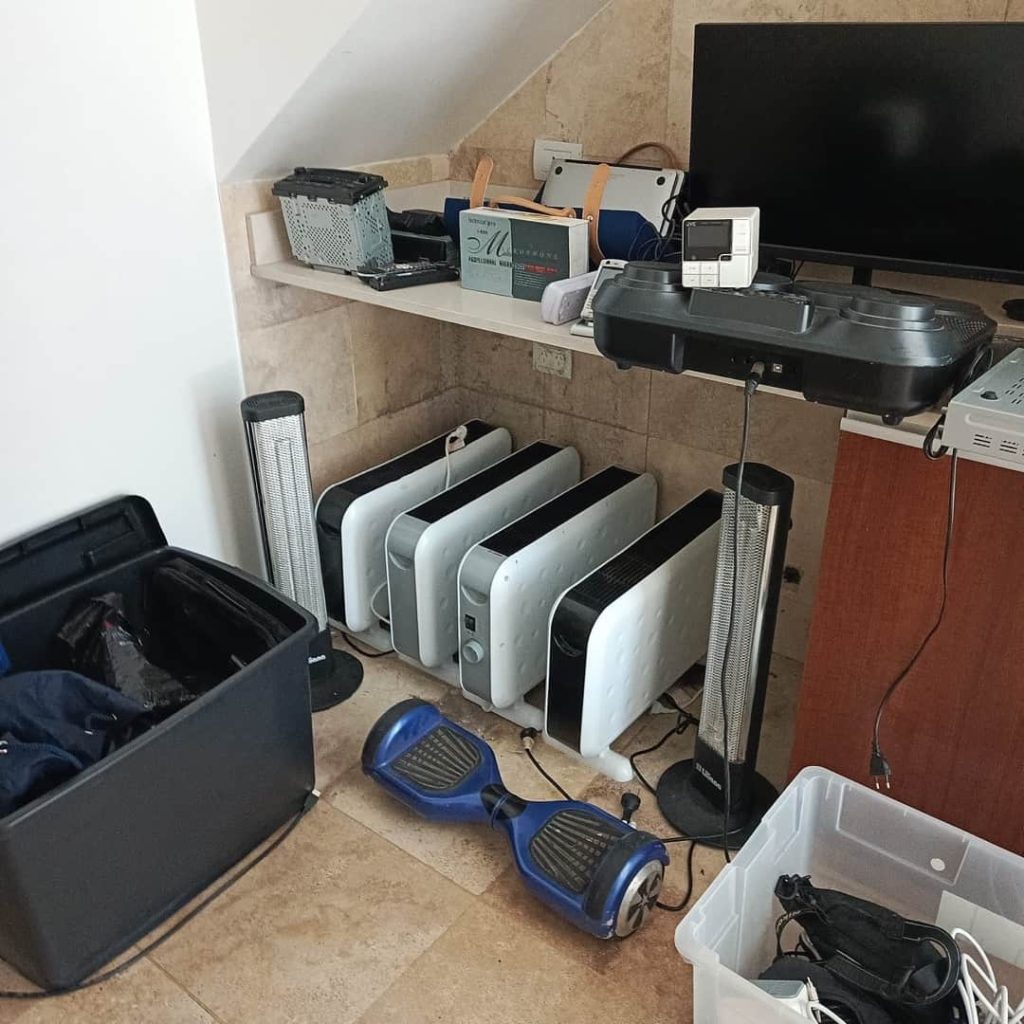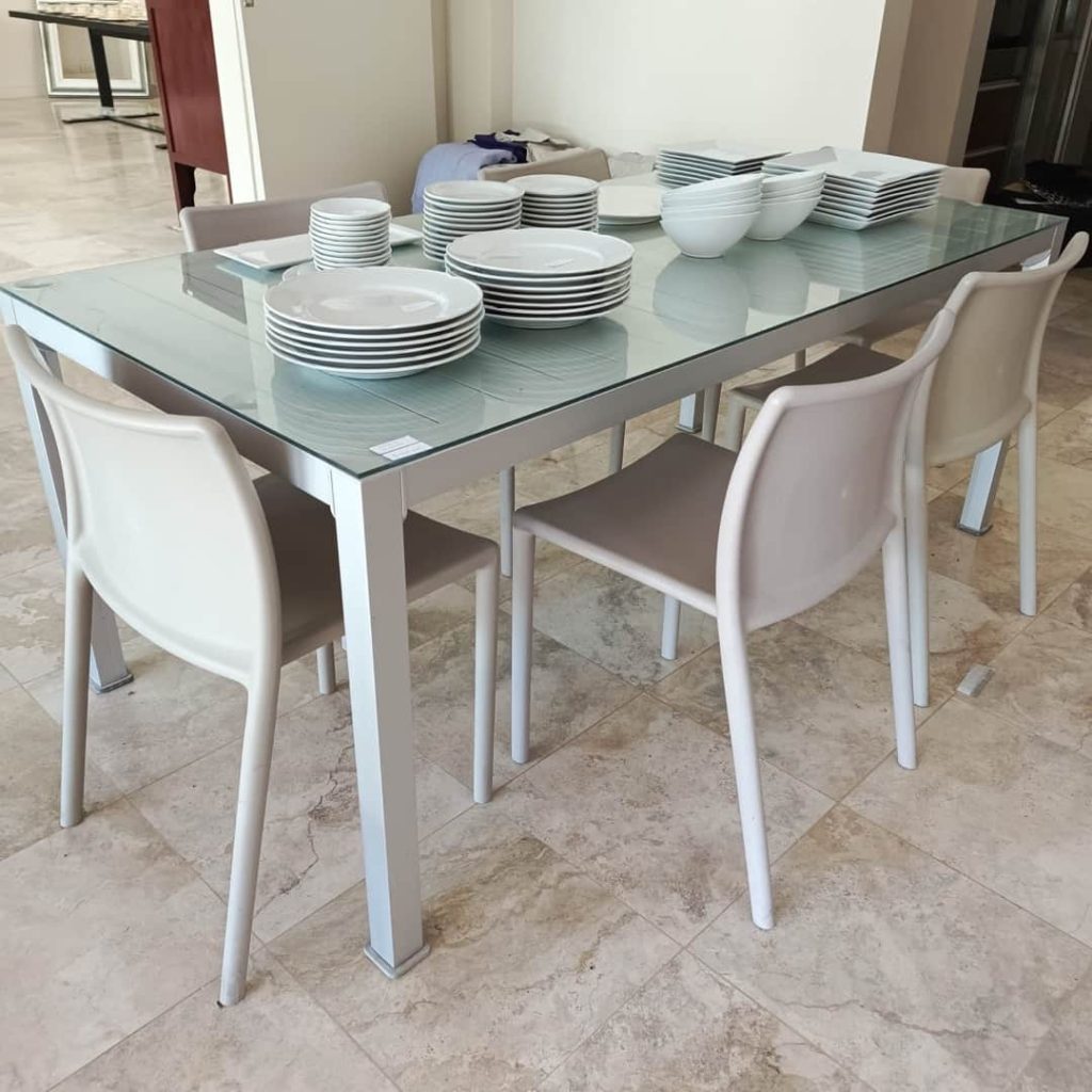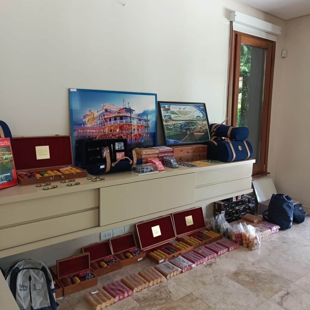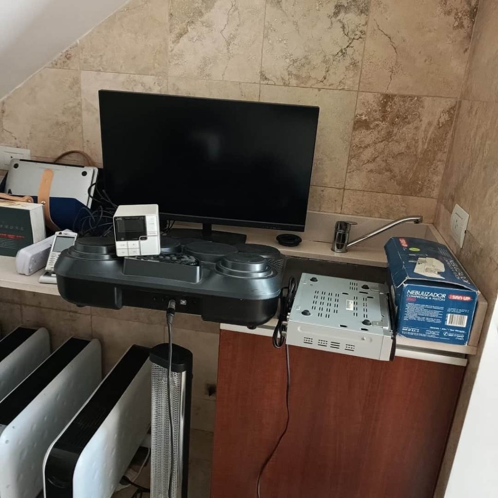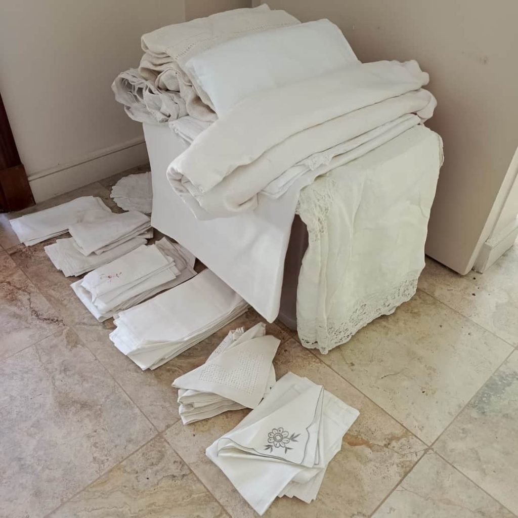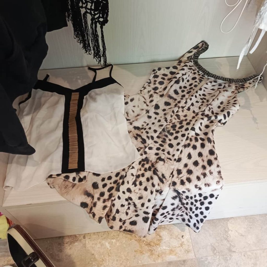 Sofá 3, 4 cuerpos diseño tapizado en lino color champagne; sofá 3 cuerpos en cuero ecológico; mueble oriental con puertas caladas; consola diseño base hierro y mesa de comedor base hierro diseño de Gris Dimensión; escritorio en madera-Adornos y vajilla, servicio de mesa con te y café porcelana nacional; jarra esmaltada con escenas costumbristas; champagnera con luz; par pedestales estructura en hierro y tapa vidrio color; espejo marco hierro diseño, otro biselado marco antiguo; cuadros decorativos y firmados; óleo jarrón con flores Medina, acrílico Cristina Trovato-Cantidad cajas herméticas y accesorios de juego; enseres de cocina; libros; valijas; 2 mesas diseño aluminio más sillas y 3 reposeras de “Gris Dimensión”; accesorios deportivos: rollers, raquetas, accesorios de ski, salvavidas, otros; cantidad manteles bordados y otros-Ropa mujer: Just Cavalli, Zara, Guss, marcas Italianas y otras; accesorios y más…