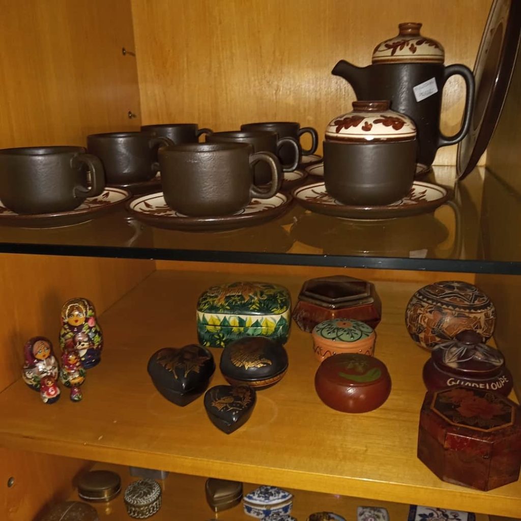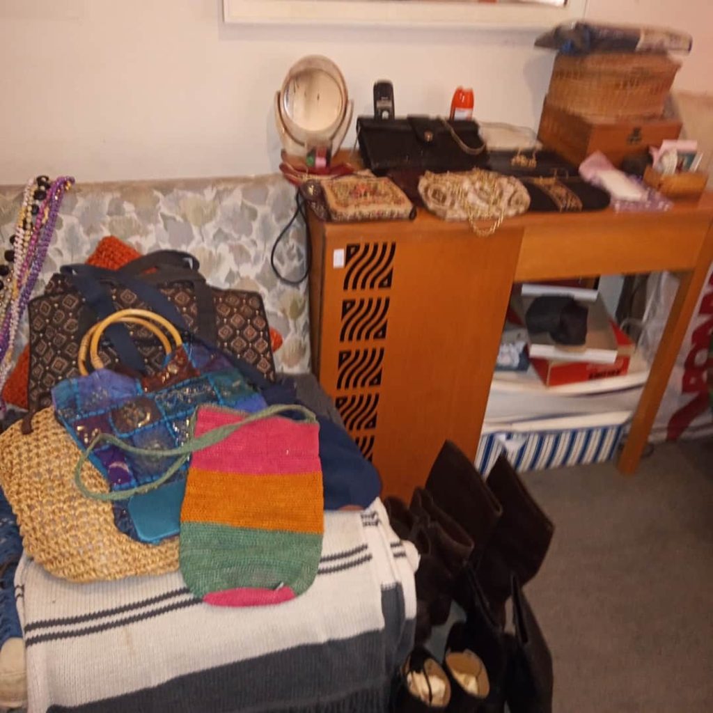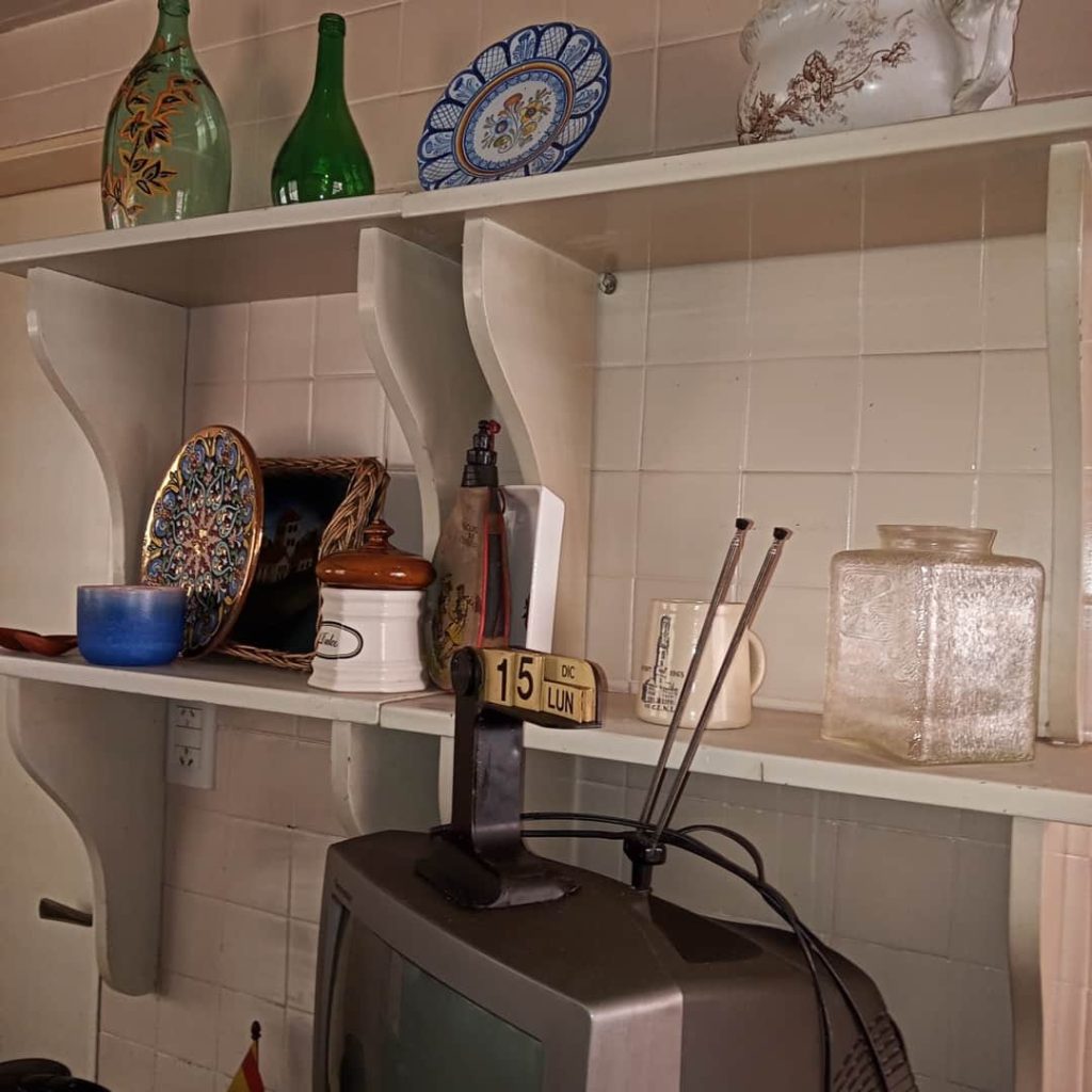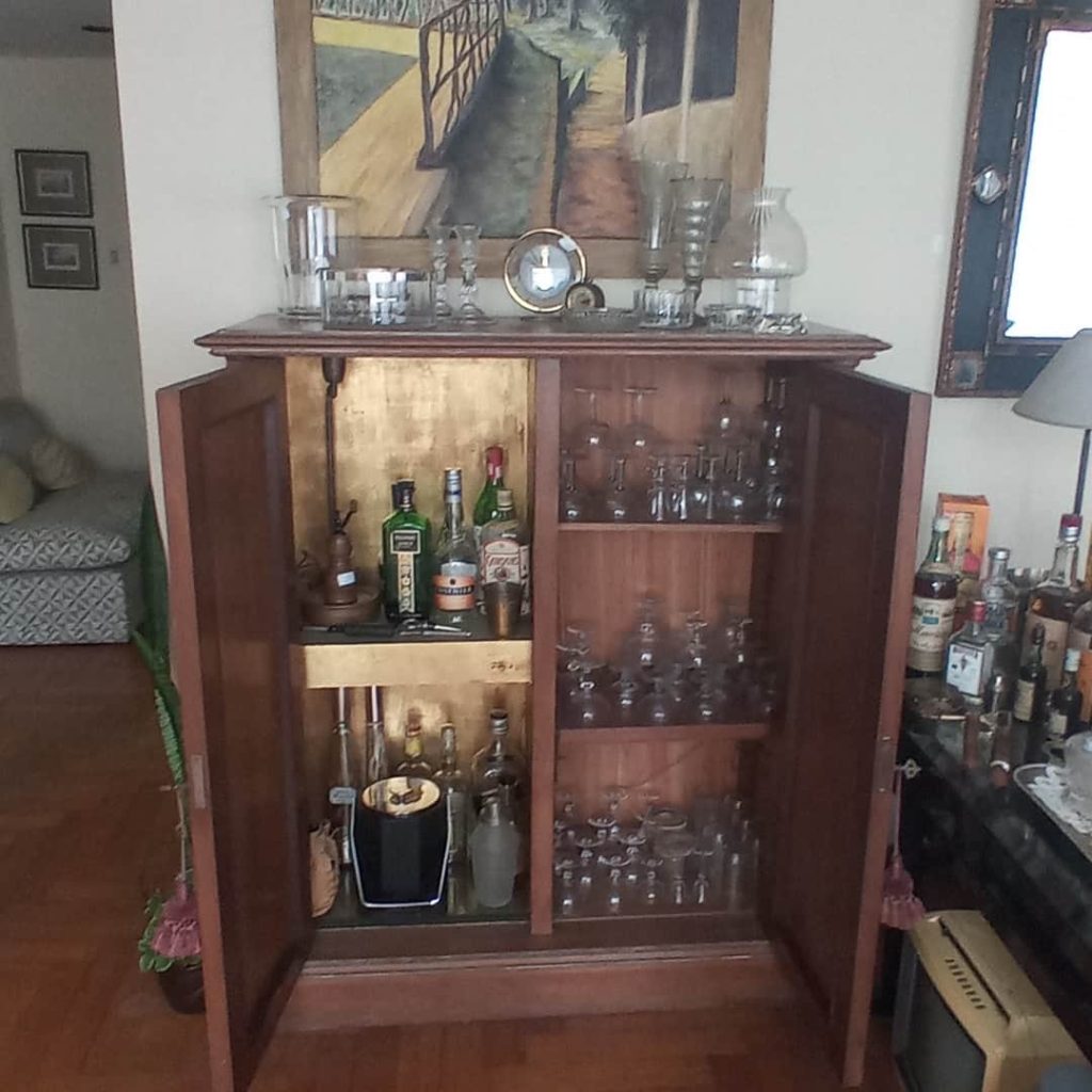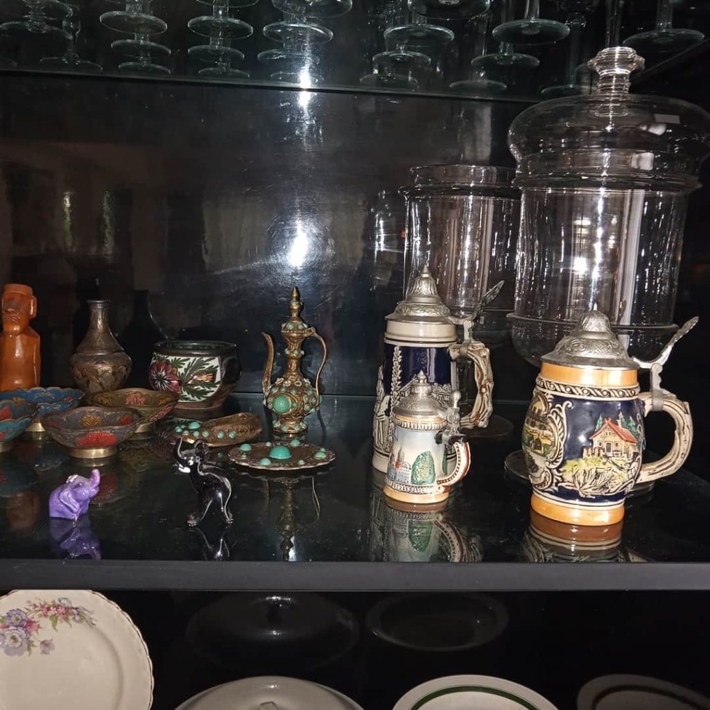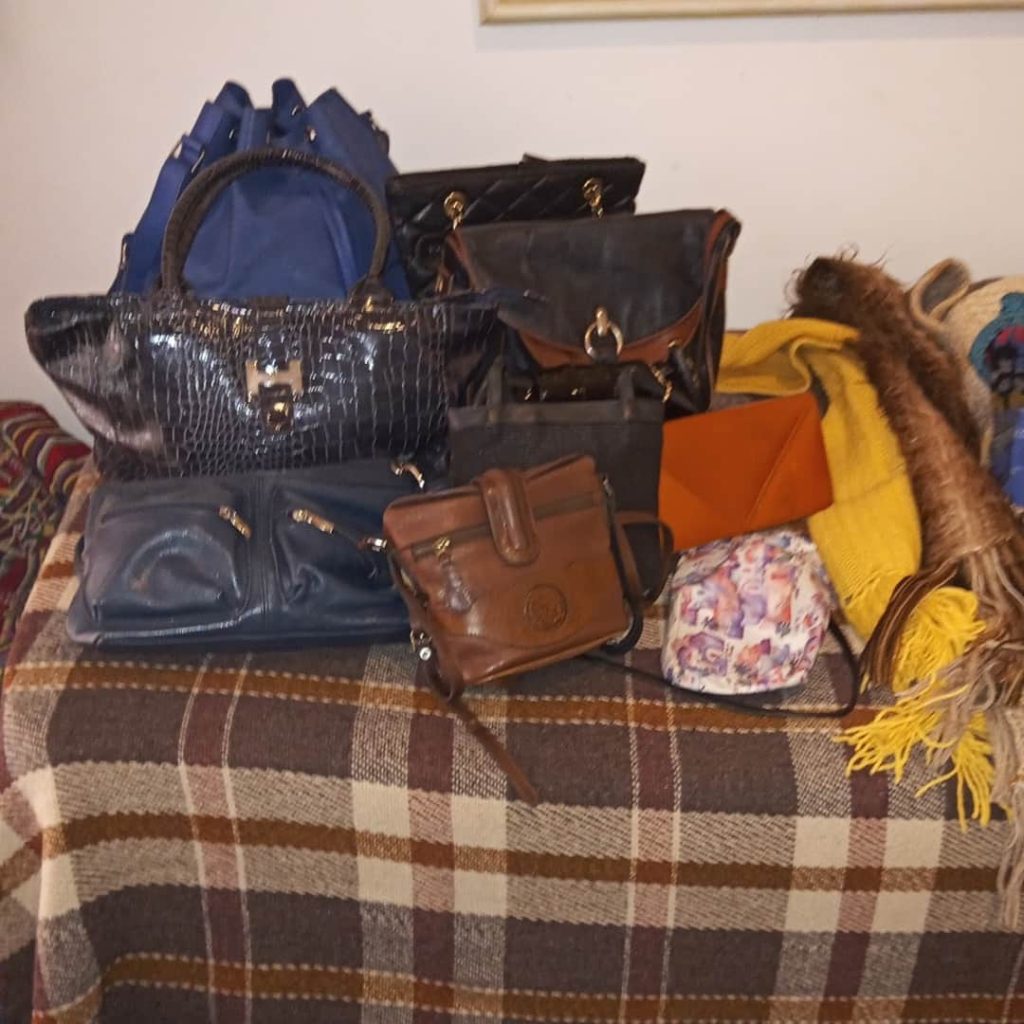 Sofá 4 cuerpos; sofá 1 cuerpo tapizado en pana; par butacones; par sillones 1 cuerpo estilo Francés; par sillas de sala con pata torneada; par butacones 2 cuerpos; butacón 3 cuerpos; 3 butacones 1 cuerpo; par banquetas puff; mesas auxiliares: 2 planos espejo y vítrea, diseño con estructura hierro y tapa vítrea, tapa redonda borde irregular, tapas redondas; consola diseño en hierro y vítrea; mueble auxiliar en madera lavada, tallada y patinada; comedor estilo Colonial Inglés laqueado en negro: mesa tapa oval y pie central con 10 sillas tapizado pana verde; vajillero laqueado en negro; cómoda estilo Inglés; cama con colchón; par mesas de luz estilo Inglés-Adornos y vajilla: juego de te en porcelana blanca Verbano; platos postre en porcelana europea; servicio de te en loza con guarda azul; servicio te en loza marrón; juego café en loza amarilla; tazas de te y café; servicio de mesa Microoven Brasilero con diseño botánico; servicio de mesa en porcelana Hartford con café y consomé; cristalería, juego copas talla flor y otras; par candeleros de vidrio prensado; copas talladas hialinas y verdes; botellones; hielera vintage; jarra con pico vertedor; caramelera de vidrio; lote de uvas vidrio; metal plateado, juego de cubiertos Plata Lappas Francés, con pescado; servicio de te y café; guisera y plato; lote cubiertos acero inoxidable; colección de cucharitas y cajitas; par gallos en bronce; reloj de mesa Alemán con números y agujas en bronce; “Perro” de bronce; óleos decorativos; espejo marco con espejitos, otros marco bronce, marco blanco, sol; araña estilo Holandés 2 niveles niquelada 12 luces; lámparas de mesa “Niño” en bronce, de cerámica degradé en violeta, de escritorio con pantalla de chapa, par de cerámica “Frutas”, par de cerámica verde oliva-Máquina de coser Singer; microondas Atma; pequeños electrodomésticos; enseres de cocina; jarra y copas en madera; bebidas; balcón: 2 silloncitos de hierro y mesa; atril antiguo y valija con elementos de pintura; libros; alfombras peludas; cortinas livianas y pesadas; almohadones, ropa de cama; manteles-Ropa mujer; accesorios, zapatos, carteras, bijoux y más…
