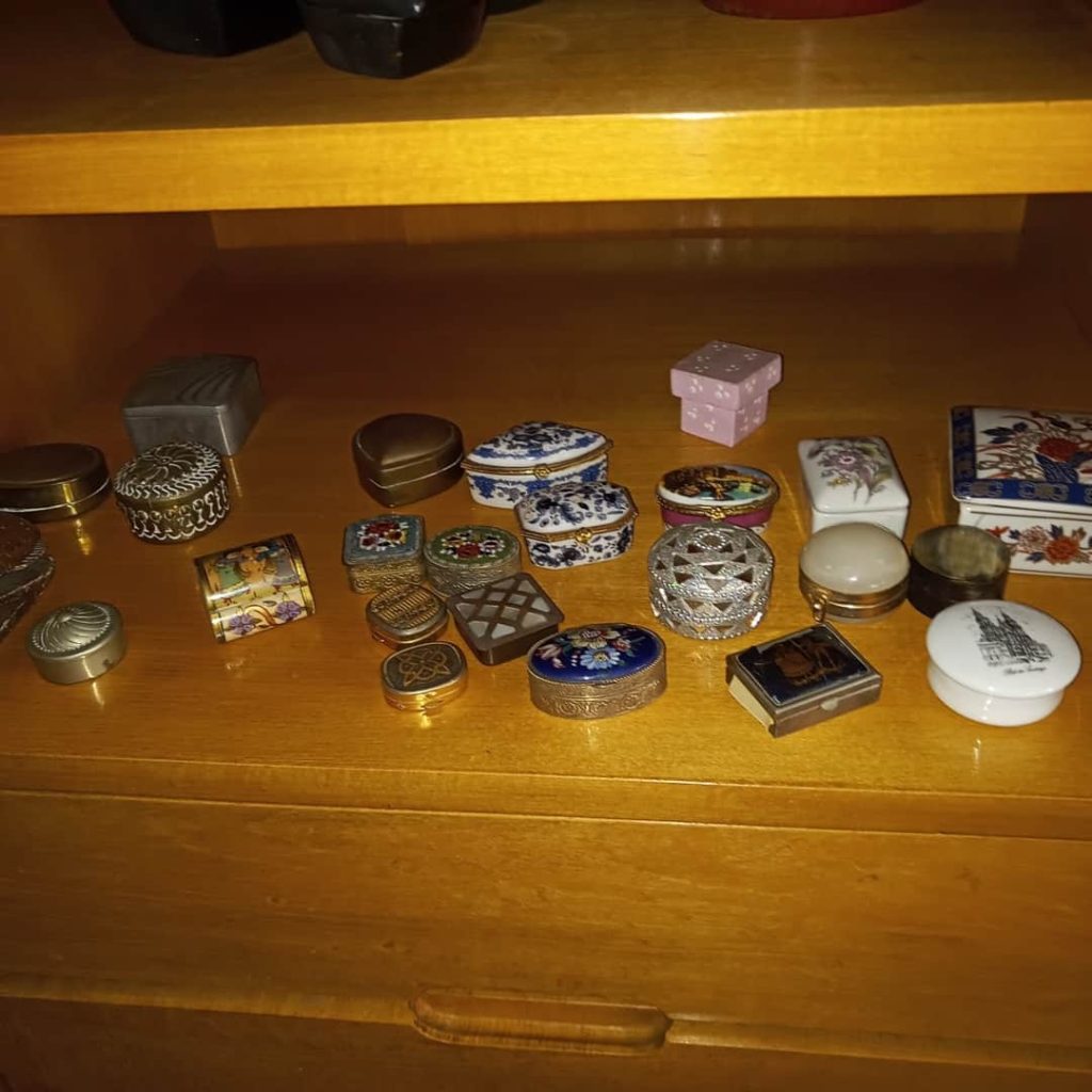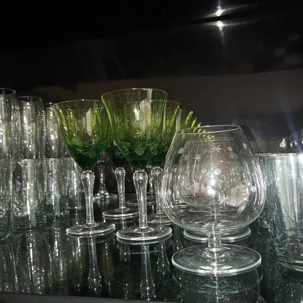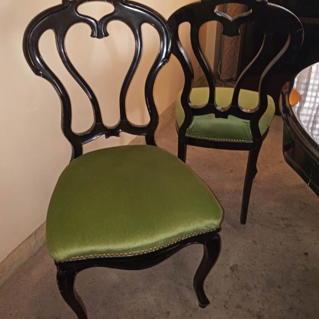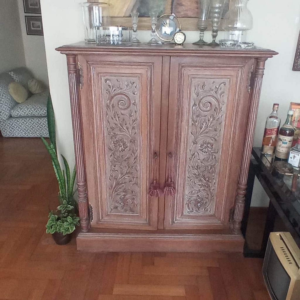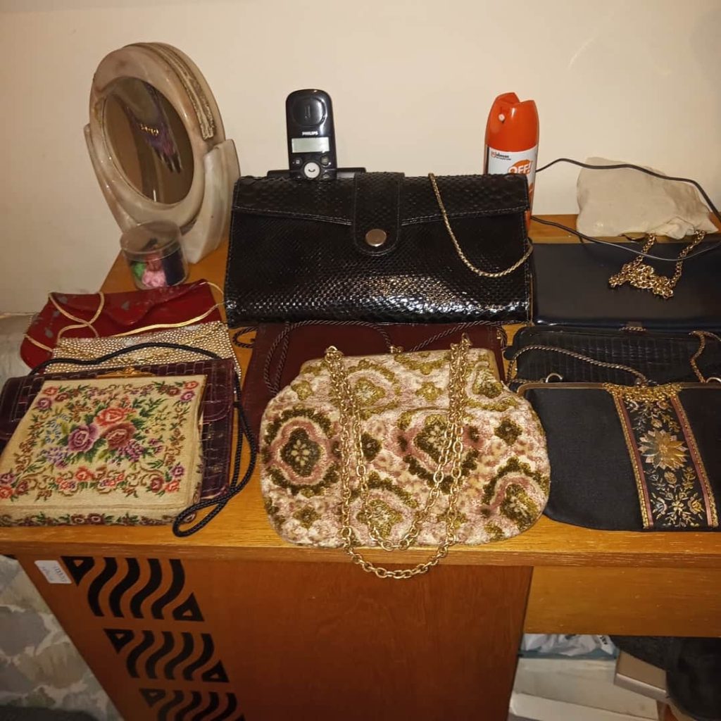 Sofá 4 cuerpos; sofá 1 cuerpo tapizado en pana; par butacones; par sillones 1 cuerpo estilo Francés; par sillas de sala con pata torneada; par butacones 2 cuerpos; butacón 3 cuerpos; 3 butacones 1 cuerpo; par banquetas puff; mesas auxiliares: 2 planos espejo y vítrea, diseño con estructura hierro y tapa vítrea, tapa redonda borde irregular, tapas redondas; consola diseño en hierro y vítrea; mueble auxiliar en madera lavada, tallada y patinada; comedor estilo Colonial Inglés laqueado en negro: mesa tapa oval y pie central con 10 sillas tapizado pana verde; vajillero laqueado en negro; cómoda estilo Inglés; cama con colchón; par mesas de luz estilo Inglés-Adornos y vajilla: juego de te en porcelana blanca Verbano; platos postre en porcelana europea; servicio de te en loza con guarda azul; servicio te en loza marrón; juego café en loza amarilla; tazas de te y café; servicio de mesa Microoven Brasilero con diseño botánico; servicio de mesa en porcelana Hartford con café y consomé; cristalería, juego copas talla flor y otras; par candeleros de vidrio prensado; copas talladas hialinas y verdes; botellones; hielera vintage; jarra con pico vertedor; caramelera de vidrio; lote de uvas vidrio; metal plateado, juego de cubiertos Plata Lappas Francés, con pescado; servicio de te y café; guisera y plato; lote cubiertos acero inoxidable; colección de cucharitas y cajitas; par gallos en bronce; reloj de mesa Alemán con números y agujas en bronce; “Perro” de bronce; óleos decorativos; espejo marco con espejitos, otros marco bronce, marco blanco, sol; araña estilo Holandés 2 niveles niquelada 12 luces; lámparas de mesa “Niño” en bronce, de cerámica degradé en violeta, de escritorio con pantalla de chapa, par de cerámica “Frutas”, par de cerámica verde oliva-Máquina de coser Singer; microondas Atma; pequeños electrodomésticos; enseres de cocina; jarra y copas en madera; bebidas; balcón: 2 silloncitos de hierro y mesa; atril antiguo y valija con elementos de pintura; libros; alfombras peludas; cortinas livianas y pesadas; almohadones, ropa de cama; manteles-Ropa mujer; accesorios, zapatos, carteras, bijoux y más…