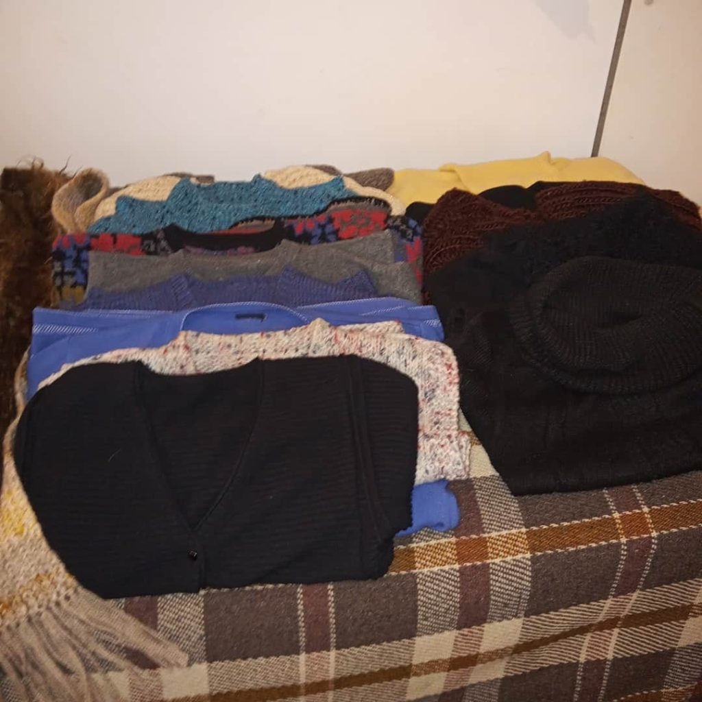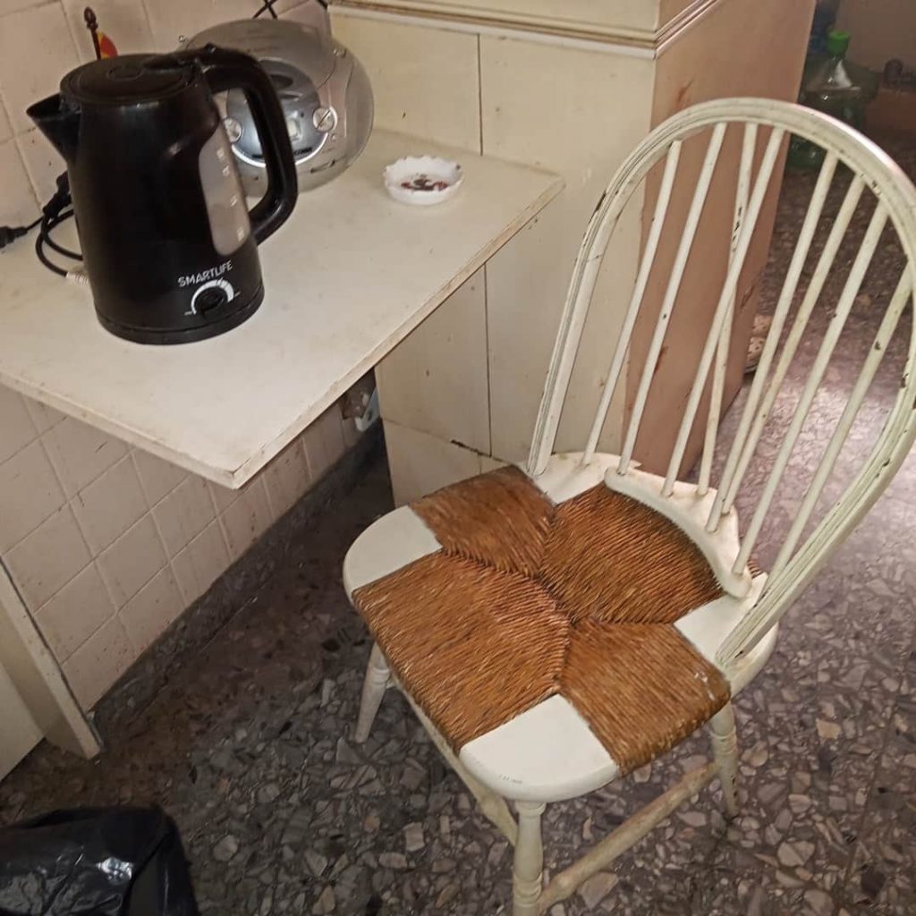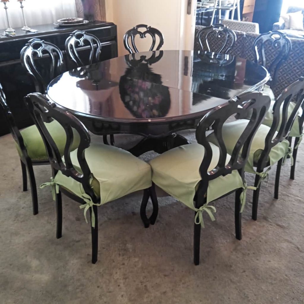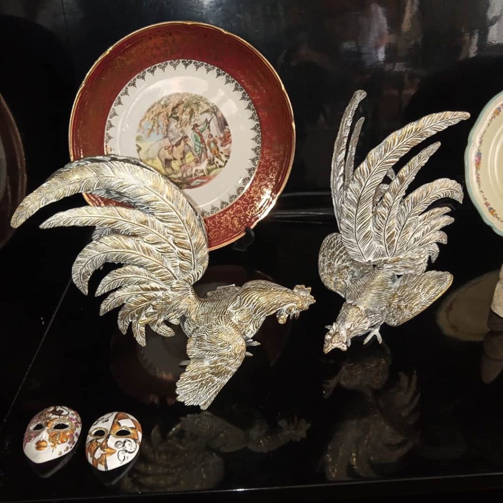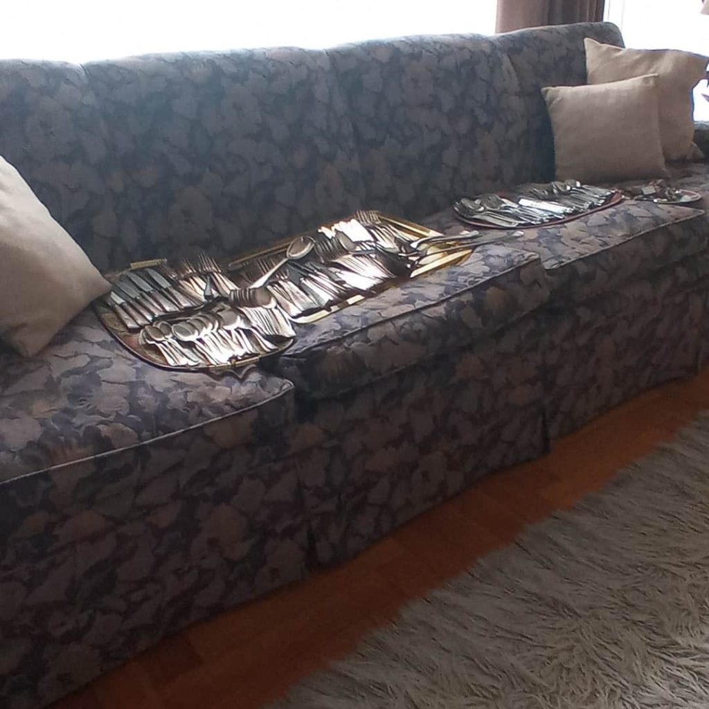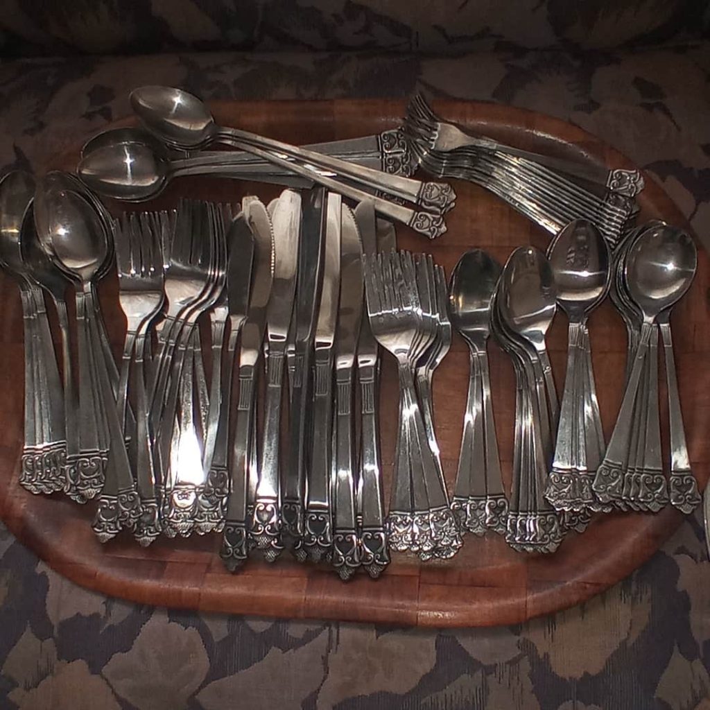 Sofá 4 cuerpos; sofá 1 cuerpo tapizado en pana; par butacones; par sillones 1 cuerpo estilo Francés; par sillas de sala con pata torneada; par butacones 2 cuerpos; butacón 3 cuerpos; 3 butacones 1 cuerpo; par banquetas puff; mesas auxiliares: 2 planos espejo y vítrea, diseño con estructura hierro y tapa vítrea, tapa redonda borde irregular, tapas redondas; consola diseño en hierro y vítrea; mueble auxiliar en madera lavada, tallada y patinada; comedor estilo Colonial Inglés laqueado en negro: mesa tapa oval y pie central con 10 sillas tapizado pana verde; vajillero laqueado en negro; cómoda estilo Inglés; cama con colchón; par mesas de luz estilo Inglés-Adornos y vajilla: juego de te en porcelana blanca Verbano; platos postre en porcelana europea; servicio de te en loza con guarda azul; servicio te en loza marrón; juego café en loza amarilla; tazas de te y café; servicio de mesa Microoven Brasilero con diseño botánico; servicio de mesa en porcelana Hartford con café y consomé; cristalería, juego copas talla flor y otras; par candeleros de vidrio prensado; copas talladas hialinas y verdes; botellones; hielera vintage; jarra con pico vertedor; caramelera de vidrio; lote de uvas vidrio; metal plateado, juego de cubiertos Plata Lappas Francés, con pescado; servicio de te y café; guisera y plato; lote cubiertos acero inoxidable; colección de cucharitas y cajitas; par gallos en bronce; reloj de mesa Alemán con números y agujas en bronce; “Perro” de bronce; óleos decorativos; espejo marco con espejitos, otros marco bronce, marco blanco, sol; araña estilo Holandés 2 niveles niquelada 12 luces; lámparas de mesa “Niño” en bronce, de cerámica degradé en violeta, de escritorio con pantalla de chapa, par de cerámica “Frutas”, par de cerámica verde oliva-Máquina de coser Singer; microondas Atma; pequeños electrodomésticos; enseres de cocina; jarra y copas en madera; bebidas; balcón: 2 silloncitos de hierro y mesa; atril antiguo y valija con elementos de pintura; libros; alfombras peludas; cortinas livianas y pesadas; almohadones, ropa de cama; manteles-Ropa mujer; accesorios, zapatos, carteras, bijoux y más…
