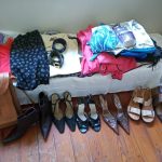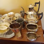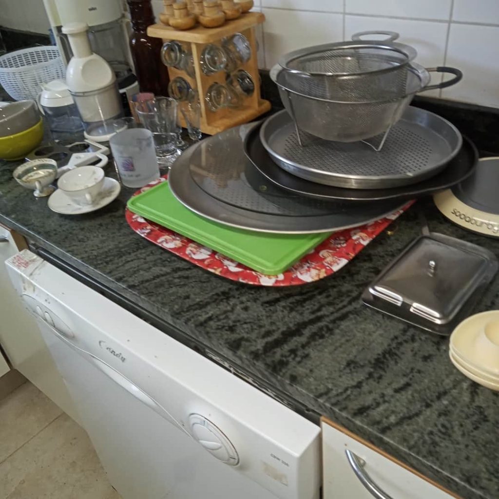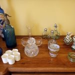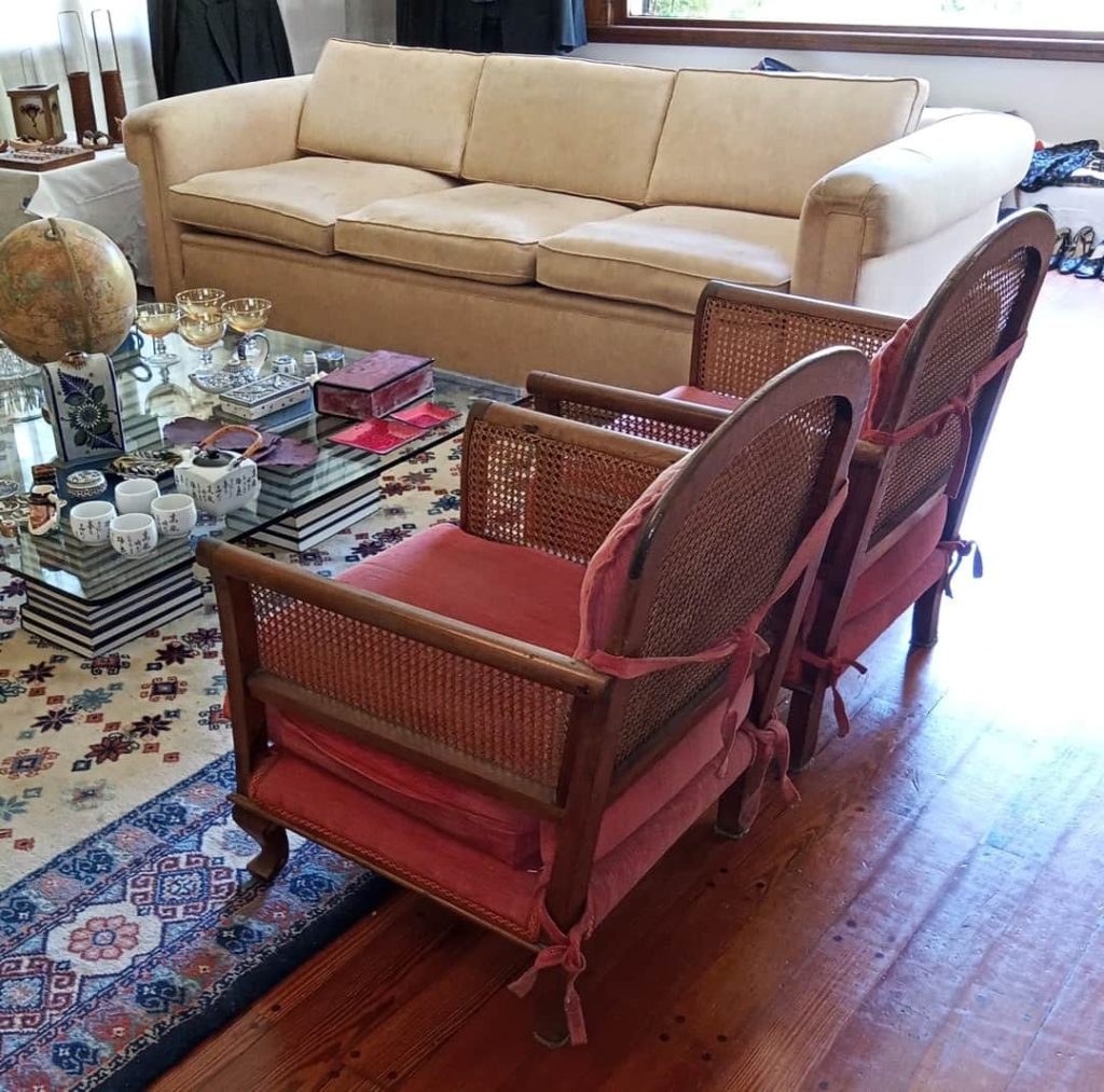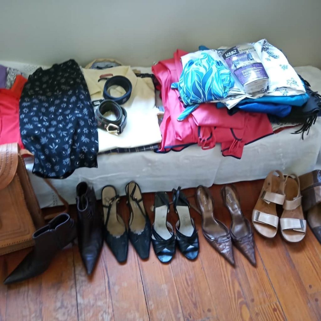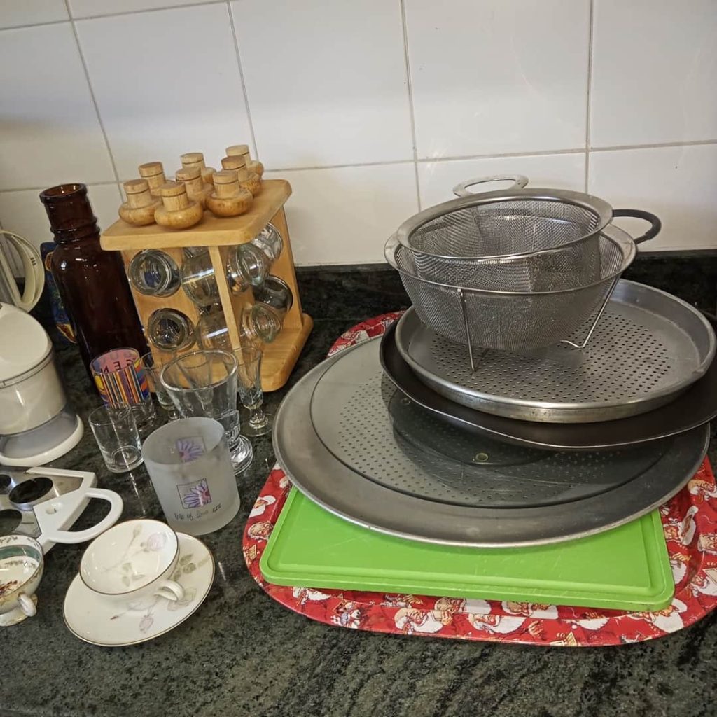 Sofá 3 cuerpos; par silloncitos esterillados con almohadones; mesas auxiliares varias; comedor roble estilo Chippendale: mesa con alargue y 6 sillas asiento tapizado; mueble bajo vajillero roble lavado 4 puertas y 3 cajones; banco 2 cuerpos con tapa asiento; mesa porta TV gris; cama hierro 2 plazas; colchón 2 plazas; par mesas luz rattan-Adornos, vajilla; juegos te y café; chopps; antigua licorera en carruaje; floreros azules; metal plateado, jarras, bandejas; bandejas peltrina; cubiertos pescado Perel; globo terráqueo; juegos de mesa madera; jarrones cerámica; cajas varios tamaños; miniaturas; campana bronce; plancha antigua; cuadro firmado Oliva, óleo; láminas gauchescas firmadas Osvaldo Gasparini; portarretratos; araña bronce estilo Holandés; lámpara de mesa cerámica blanca; apliques con tulipas antiguas-Heladera doble puerta acero, 110w; secarropas GE a 110w; microondas Samsung 110w; soda PSA; enseres cocina, especiero, fuentes; estufa Bram metal; juego jardín fundición de aluminio; accesorios bebé: coche jogger 3 ruedas, sillita auto, sillita para colgar en mesas; rollers; trapecio de circo aéreo nuevo; raquetas, paletas; libros-Ropa hombre, mujer, accesorios; bijoux y más…