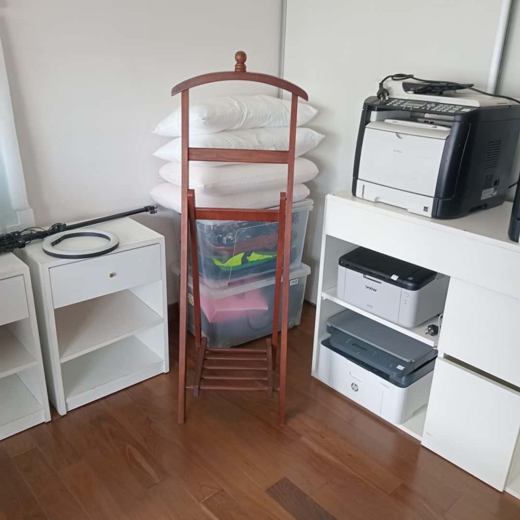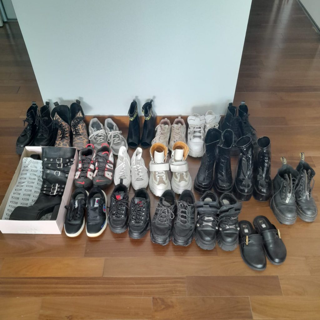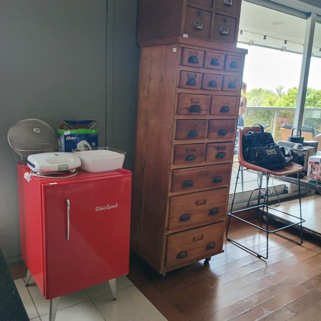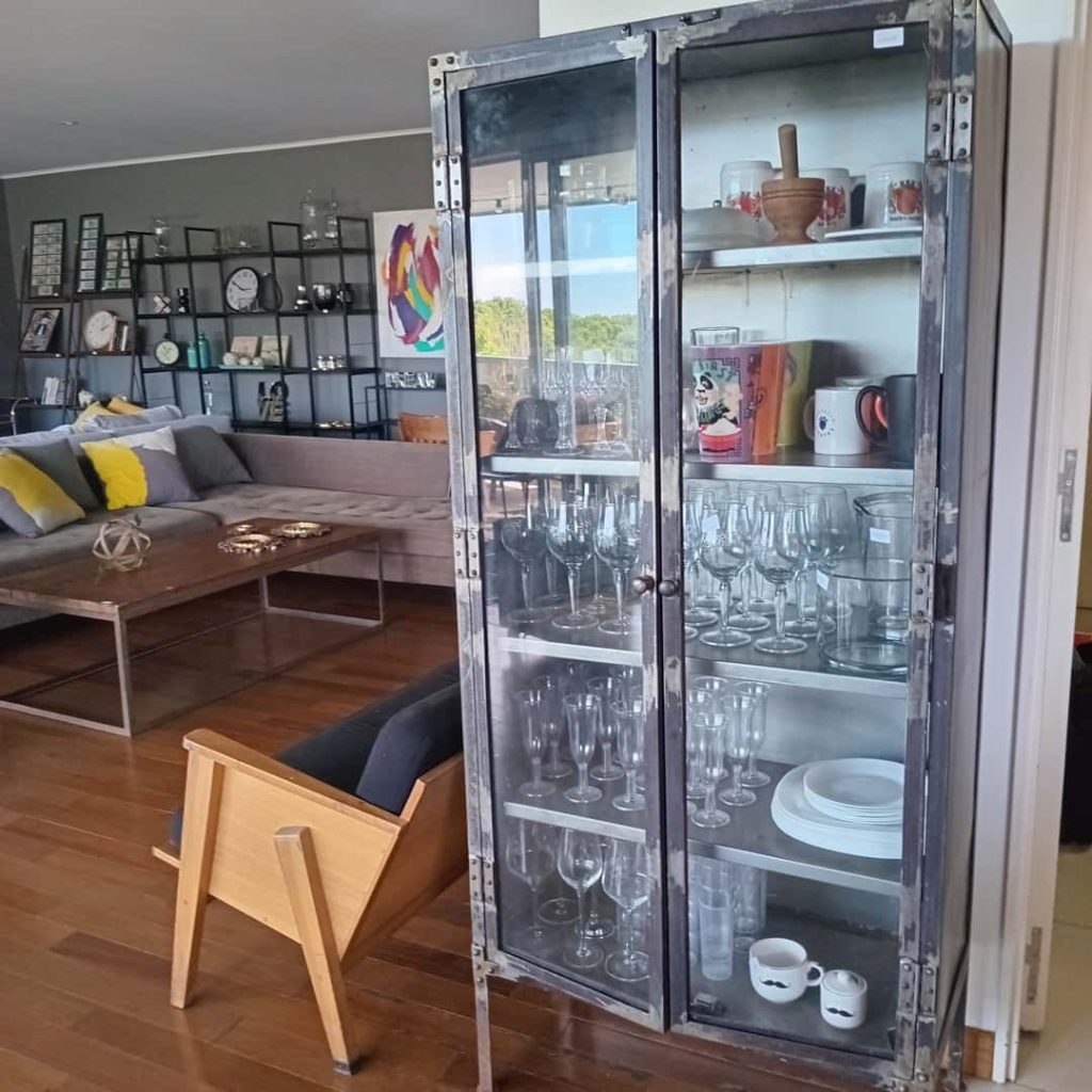 Sillón en L; sillón en L capitoné gris; sillón en madera diseño; banquetas altas de cuero; 3 silloncitos diseño con almohadones negros; 3 silloncitos diseño con almohadones negros individuales; sillón de diseño en pana negra; par silloncitos grises; butacón capitoné en cuero negro; mesas auxiliares, carro, 2 estructura hierro y tapa madera, doble plano con ruedas estructura en metal y madera, con estructura cromada, otras; vajillero con ruedas patinado 2 cajones y 1 puerta; comedor: mesa y silloncitos de diseño; biblioteca metálica; fichero pequeño de madera 4 cajones y fichero 15 cajones; mueble de guardado en chapa 2 puertas, otro de guardado en metal y vidrio 2 puertas; vajillero bajo negro con estructura en hierro; mueble de guardado amarillo con cajón, otro en chapa con 6 puertas; estantería de diseño; consola doble plano en hierro negro; respaldo capitoné; perchero de diseño; percha valet; par mesas de luz en melanina-Adornos y vajilla; juego de servicio motivo náutico Brasilero; cristalería, copas, vasos, hielera, jarra, caramelera; plato de sitio amarillo diseño; floreros Landmark y otros; par candelabros pátina dorada; espejo de diseño circular, otros marco patinado estilo Francés; cuadros decorativos, billetes enmarcados; par veladores dorados-Monitores; impresoras HP, Ricoh, Brother; aro de luz para fotografía; máquina corta papeles Papel Fellowers; lavavajillas Whirlpool; heladera Patrick; 3 cafeteras Expresso; microondas BGH; batería de cocina Kitchen Aid; máquina de hielo Bacope; Sodastream; sandwichera Philips; batidora Oster; heladera pequeña Whirlpool en rojo y blanco; extractor de jugo Ultracomb; exprimidor; espumador Philips; dispenser de vino Wine Emotion; aspiradora Samsung; 2 jarros Nespresso, dispenser de cápsulas; set de taza/plato Nespresso; juego cubiertos de diseño Kremer; cava Vandom para 10; enseres de cocina; locker en chapa color óxido; mesa alta con 2 banquetas en metal blanco y madera; 4 silloncitos plásticos-2 Alfombras geométricas de Rapsodia, Ropa de mujer marcas: KSK , Mono, algunas de MK, Zapatos: Puli Shoes, Valdés, Mishka y más…
