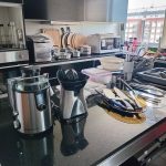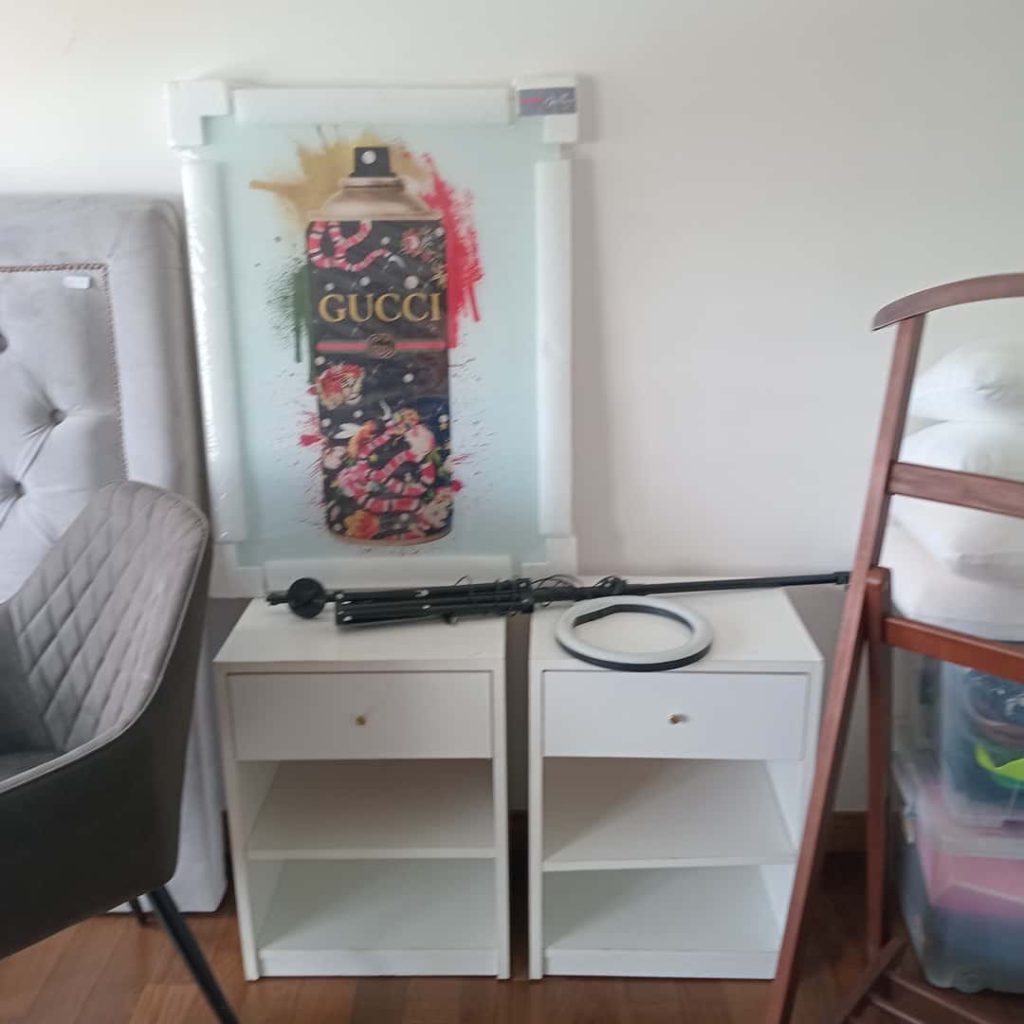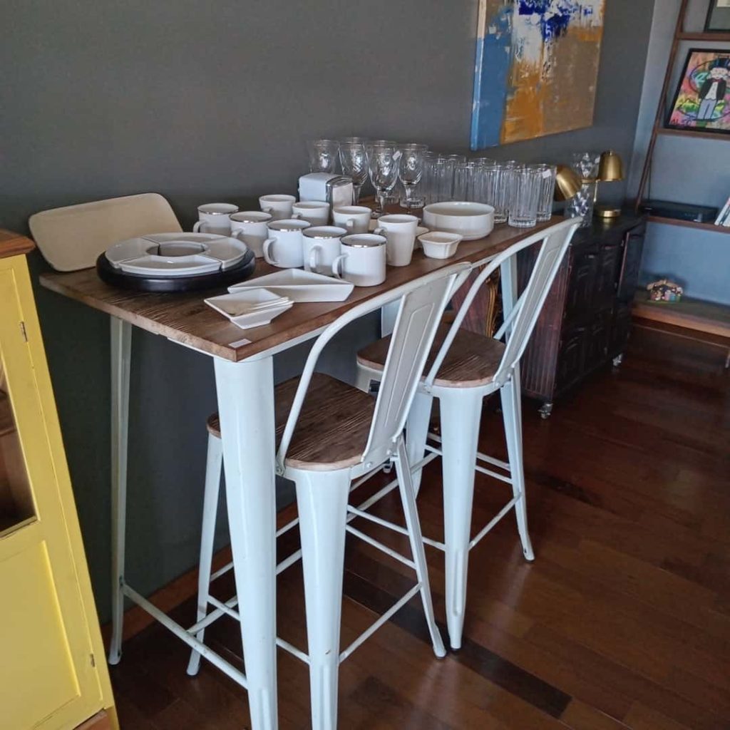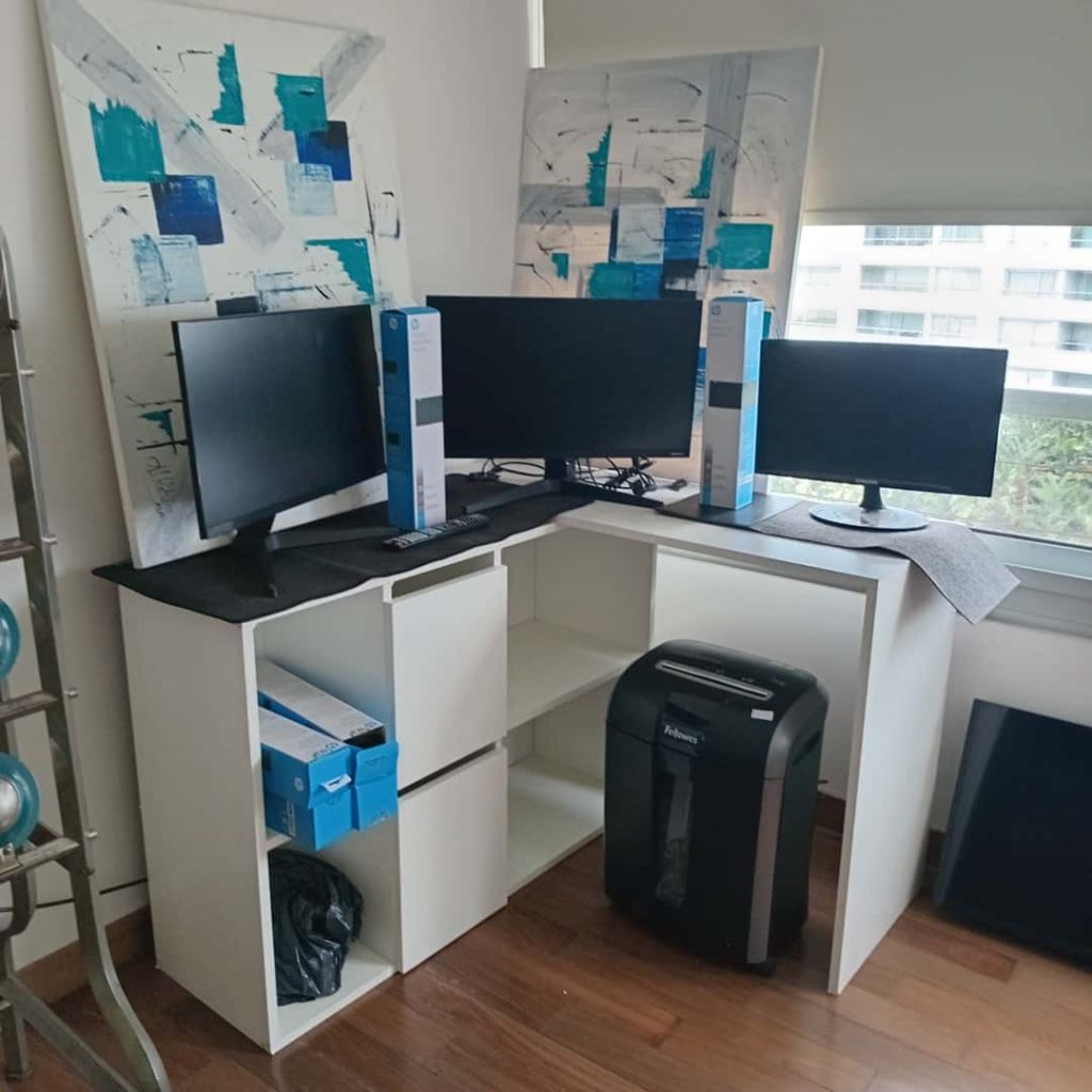 Sillón en L; sillón en L capitoné gris; sillón en madera diseño; banquetas altas de cuero; 3 silloncitos diseño con almohadones negros; 3 silloncitos diseño con almohadones negros individuales; sillón de diseño en pana negra; par silloncitos grises; butacón capitoné en cuero negro; mesas auxiliares, carro, 2 estructura hierro y tapa madera, doble plano con ruedas estructura en metal y madera, con estructura cromada, otras; vajillero con ruedas patinado 2 cajones y 1 puerta; comedor: mesa y silloncitos de diseño; biblioteca metálica; fichero pequeño de madera 4 cajones y fichero 15 cajones; mueble de guardado en chapa 2 puertas, otro de guardado en metal y vidrio 2 puertas; vajillero bajo negro con estructura en hierro; mueble de guardado amarillo con cajón, otro en chapa con 6 puertas; estantería de diseño; consola doble plano en hierro negro; respaldo capitoné; perchero de diseño; percha valet; par mesas de luz en melanina-Adornos y vajilla; juego de servicio motivo náutico Brasilero; cristalería, copas, vasos, hielera, jarra, caramelera; plato de sitio amarillo diseño; floreros Landmark y otros; par candelabros pátina dorada; espejo de diseño circular, otros marco patinado estilo Francés; cuadros decorativos, billetes enmarcados; par veladores dorados-Monitores; impresoras HP, Ricoh, Brother; aro de luz para fotografía; máquina corta papeles Papel Fellowers; lavavajillas Whirlpool; heladera Patrick; 3 cafeteras Expresso; microondas BGH; batería de cocina Kitchen Aid; máquina de hielo Bacope; Sodastream; sandwichera Philips; batidora Oster; heladera pequeña Whirlpool en rojo y blanco; extractor de jugo Ultracomb; exprimidor; espumador Philips; dispenser de vino Wine Emotion; aspiradora Samsung; 2 jarros Nespresso, dispenser de cápsulas; set de taza/plato Nespresso; juego cubiertos de diseño Kremer; cava Vandom para 10; enseres de cocina; locker en chapa color óxido; mesa alta con 2 banquetas en metal blanco y madera; 4 silloncitos plásticos-2 Alfombras geométricas de Rapsodia, Ropa de mujer marcas: KSK , Mono, algunas de MK, Zapatos: Puli Shoes, Valdés, Mishka y más…